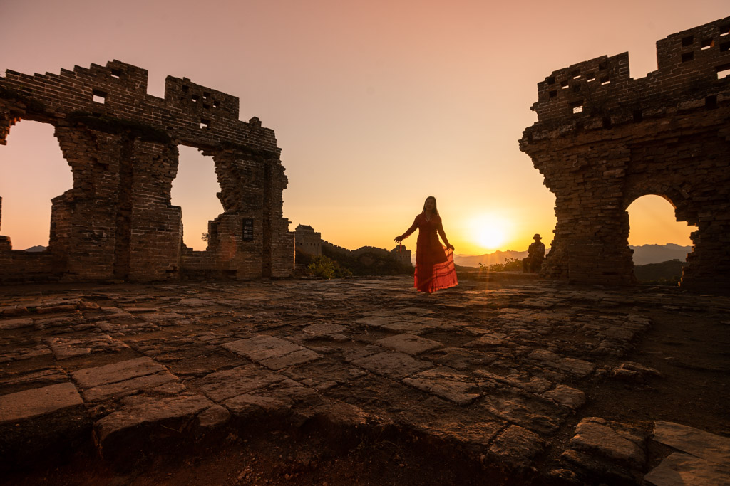 我们到达的时间刚好是下午,收拾一下就直接缆车上山拍摄。我非常喜欢后川口那个方向的日落,特别是那个残破的城楼,正对日落。某摄影师的红衣模特被我瞬间抓拍了一张,也成为我非常喜欢的作品。