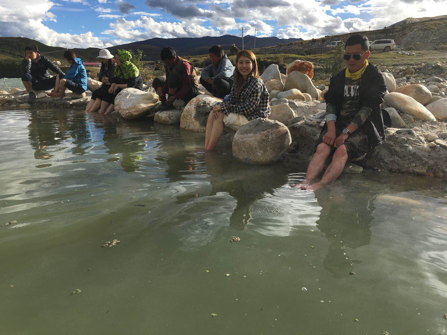路遇野温泉,怎可放过,脱鞋下水,做得顺畅无比。