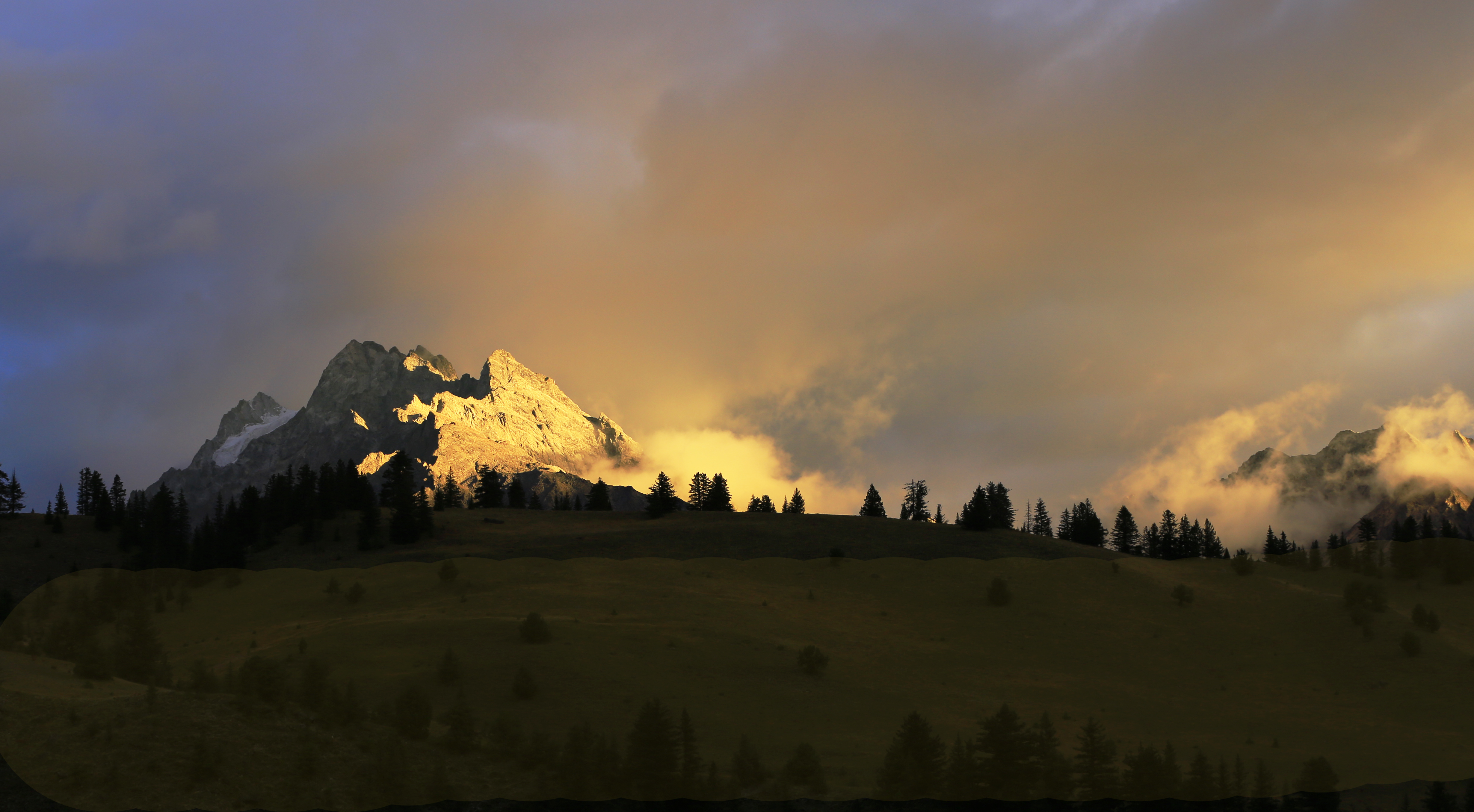 日照金山果然没这么容易看到,云层有点厚,一直到日落西山也未等到;但云海层层叠叠、拥拥簇簇刹是好看。