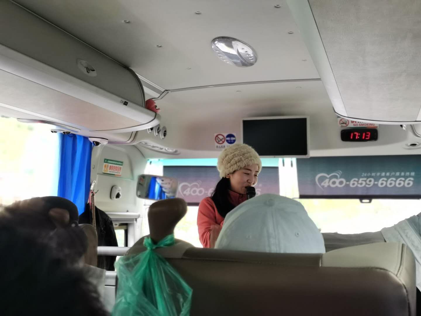 早上我们6:10「打冲民居」一楼大厅集合,洗漱用品存放前台,带上御寒衣物,干粮,登山用具和适量饮用水,导游带领大家去二号站吃早餐,早餐后6:40在二号站排队等车(第一班七点)。很幸运的是,我们刚吃完早餐,6:40就坐上了第一班观光车,完美地避开了人流拥挤。