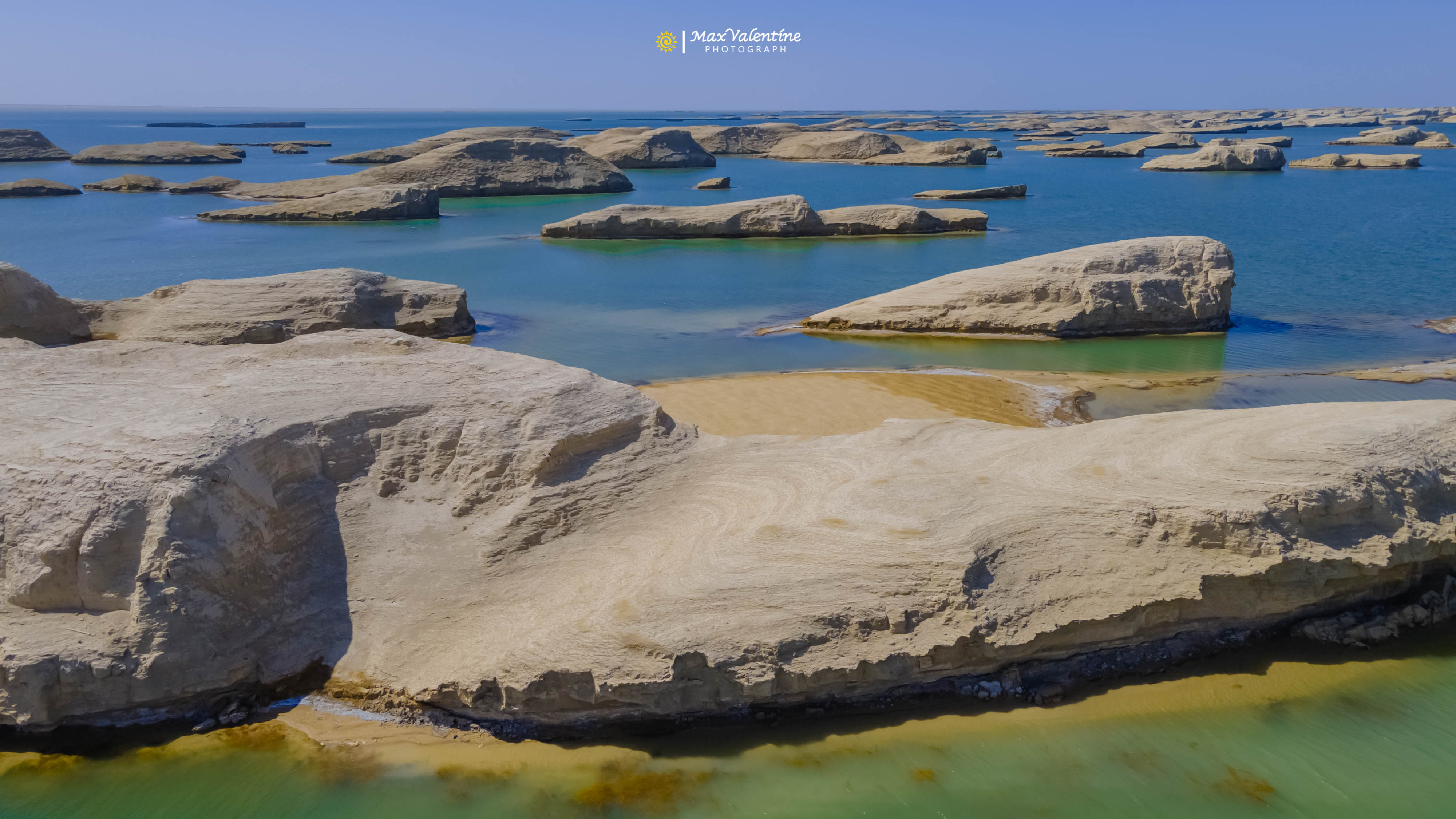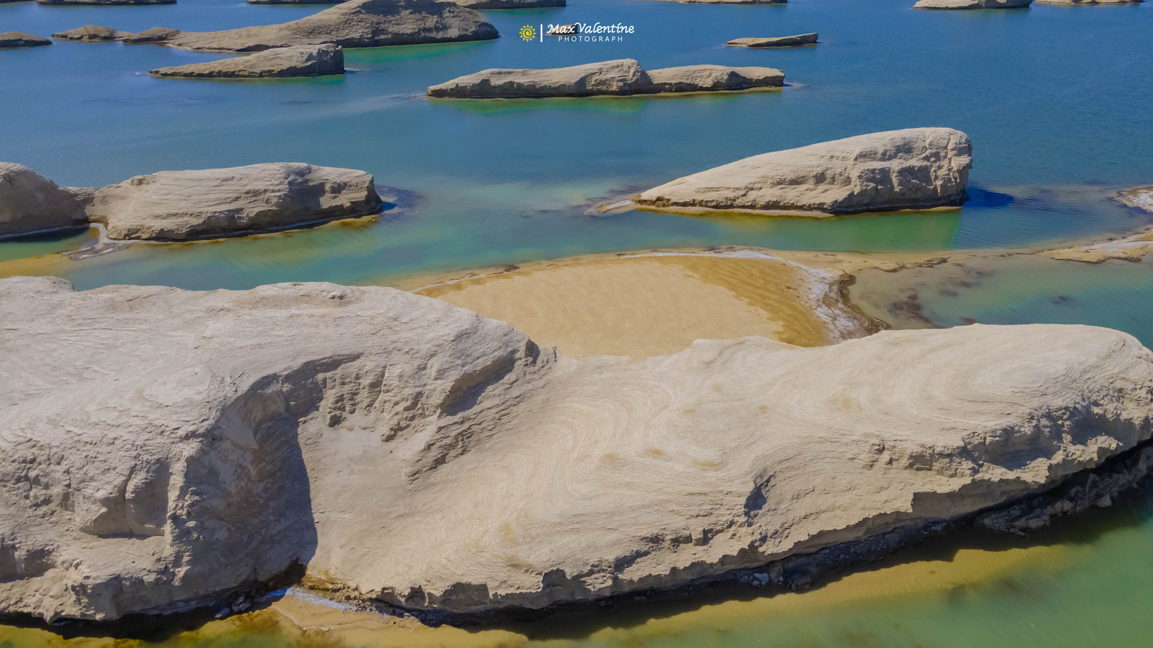 但这里因为水位的倒灌,湖水开始淹没了雅丹群