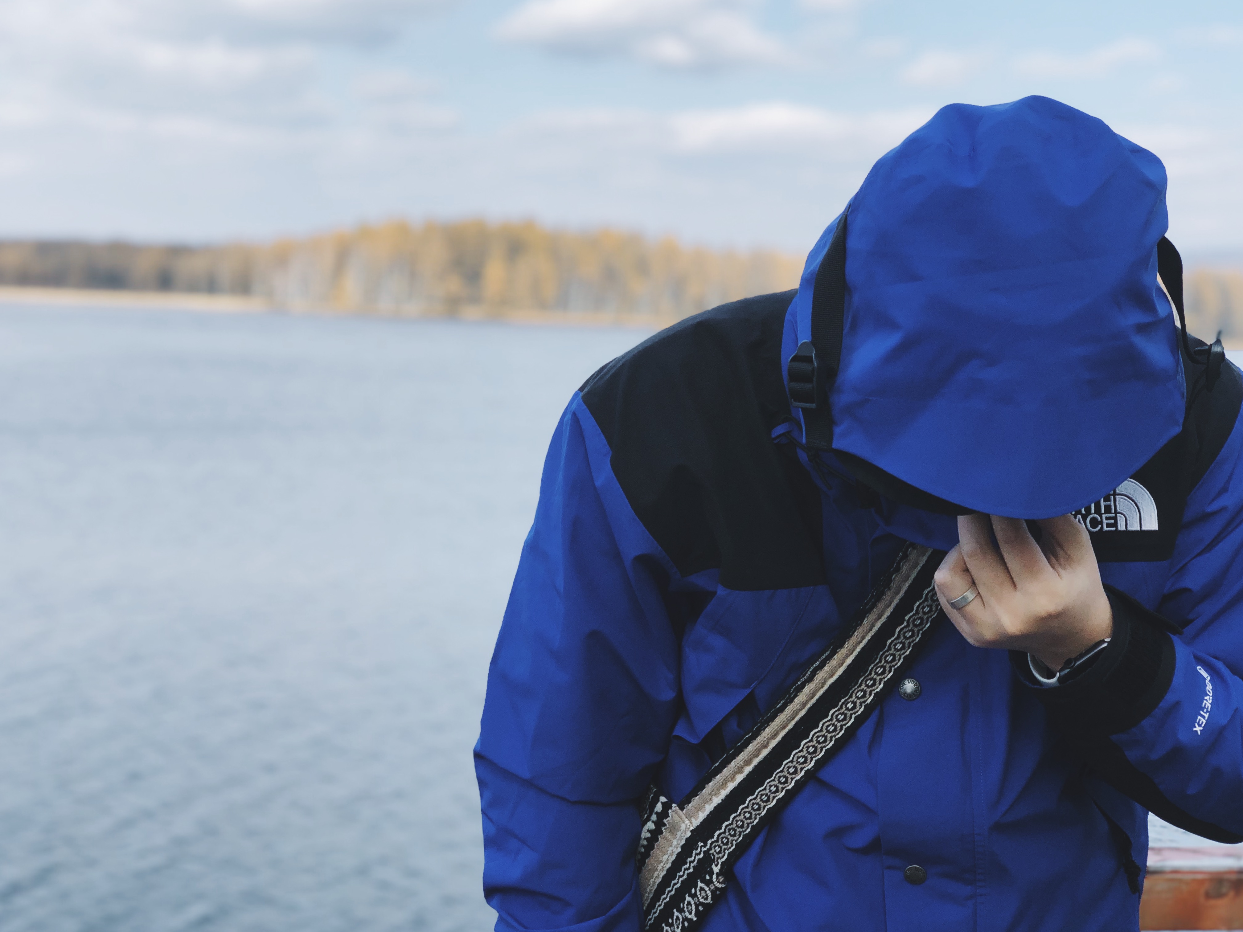 这件冲锋衣一度被我吐槽很像饿了么的工服,但也还蛮上镜呢。