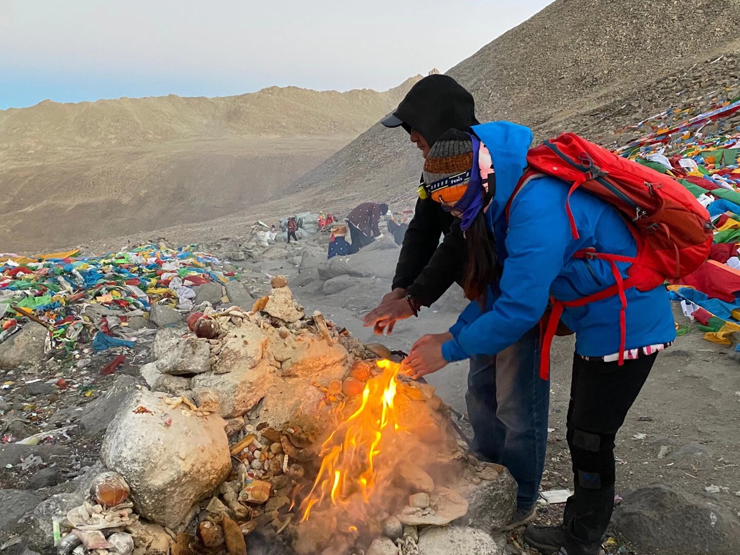 冈仁波齐转山有大小转之分,大转五十几公里,一般人要用到两到三天,小转二十几公里一般一天就可以,我们计划用两天大转。早上简单吃了自备干粮在九点左右出发,此时已是旅游淡季,景区早在10月13日就已歇业,这倒是给省了景区门票,天空湛蓝无云,阳光温煦的洒在身上但依然解不了零下近十度的寒凉。