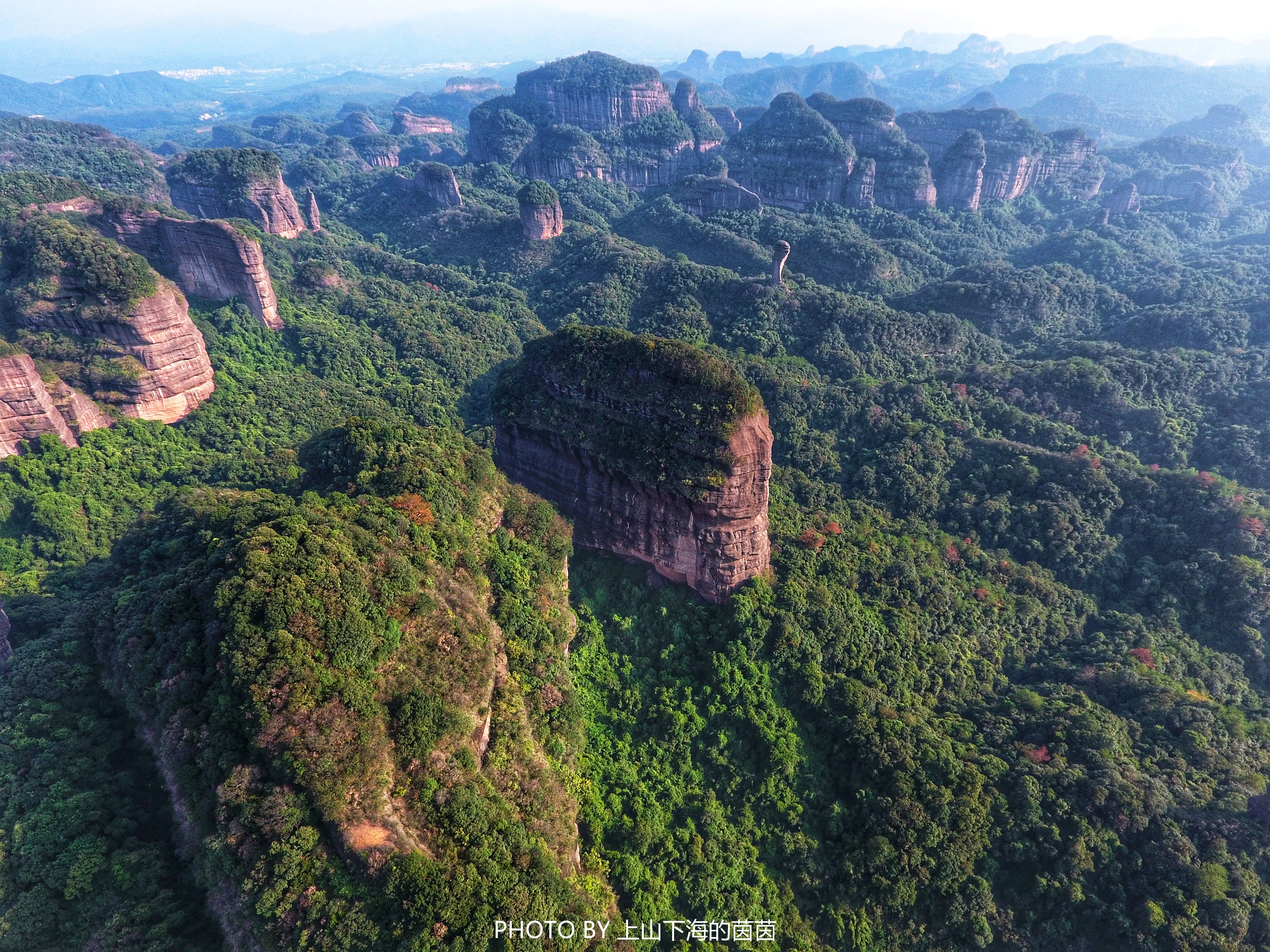 阳元石景区绝对是中国丹霞山世界地质公园里最特别的存在了,景区里的核心景观就是那高28米、直径7米的天然石柱——“阳元石”了!虽然阳元石有专属的观景台,但在我看来最好的“机位”在空中。从无人机的视角可以更直观的呈现这个惟妙惟肖的大石头柱子!大自然用了30万年将石柱和阳元山进行剥离,不得不感叹上天的鬼斧神工!