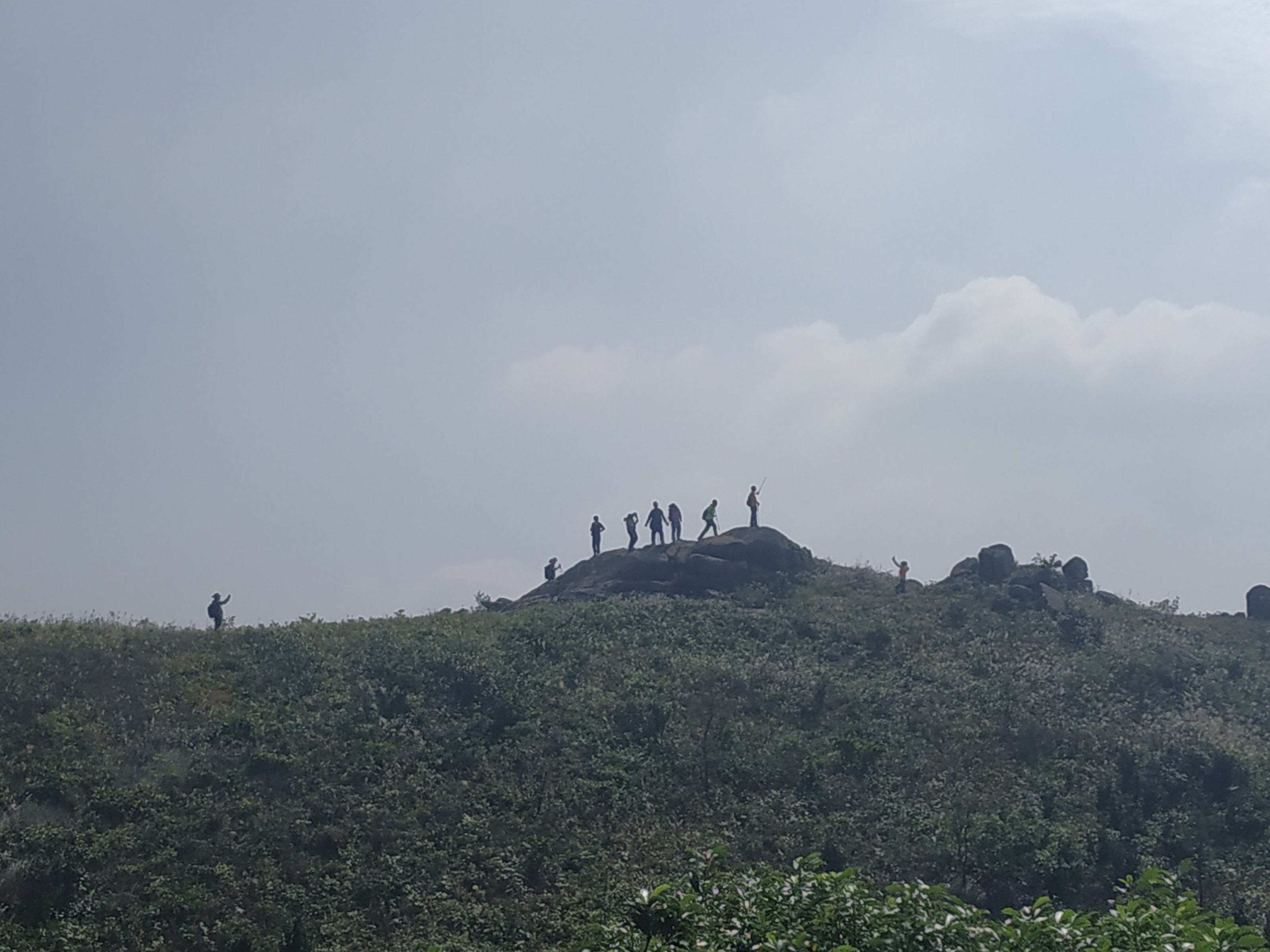 二呢,就不得不提一下石头上的群众艺术家。话说登高望远,每上到一块更高的石头,都有更好的视野,这一点黄杨山没有令人失望,总有那么几块让艺术家们既可以望远,又能无时无刻地拍照,就差在石头上跳舞了。