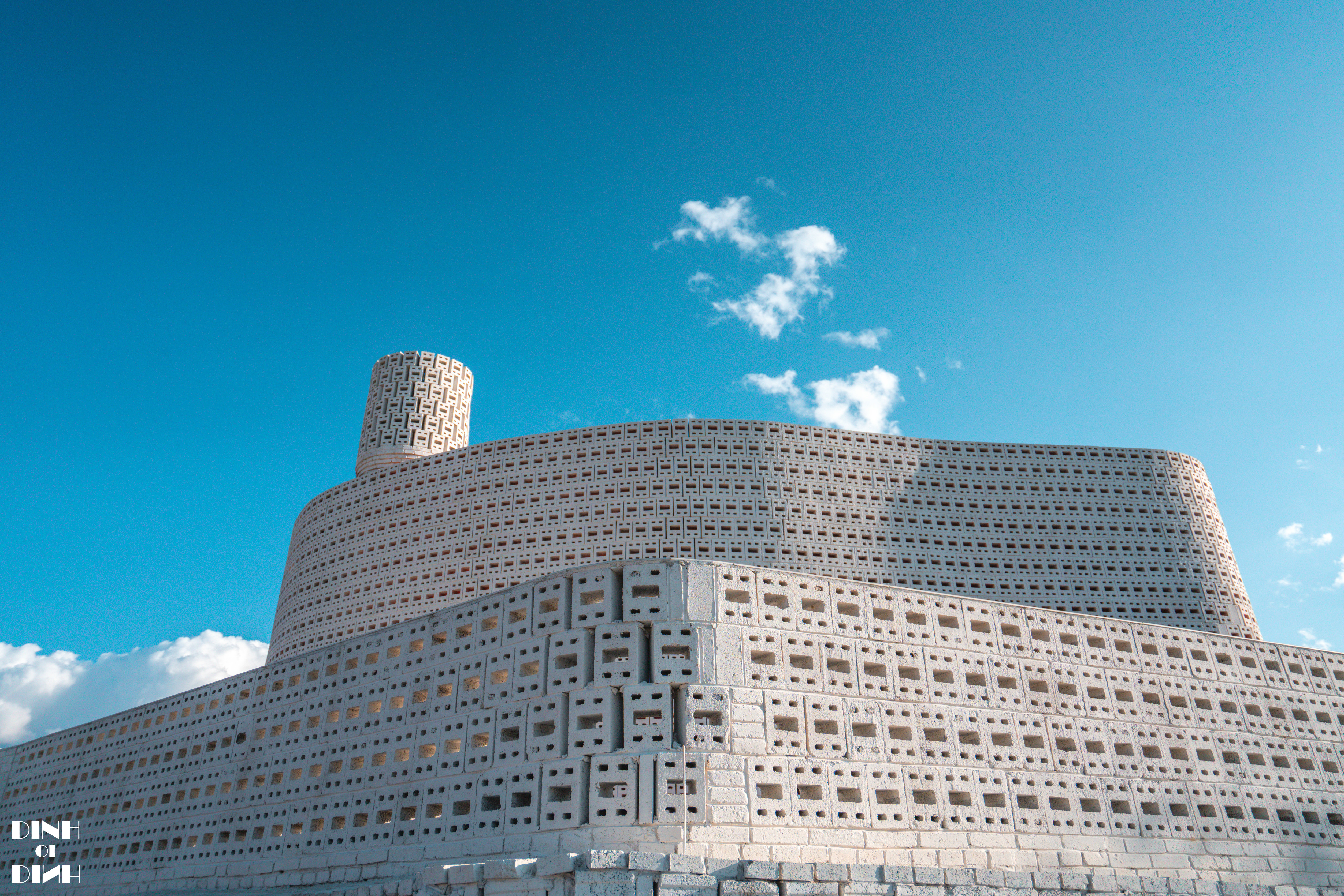 白色高处的蚁工塔是精神追求的象征。蚁工塔算是蚁工坊里最高的建筑了,建在黄土堆上,周边是一圈圈的花卉,谁能想到这是旧物改造的烧窑的炉子呢?