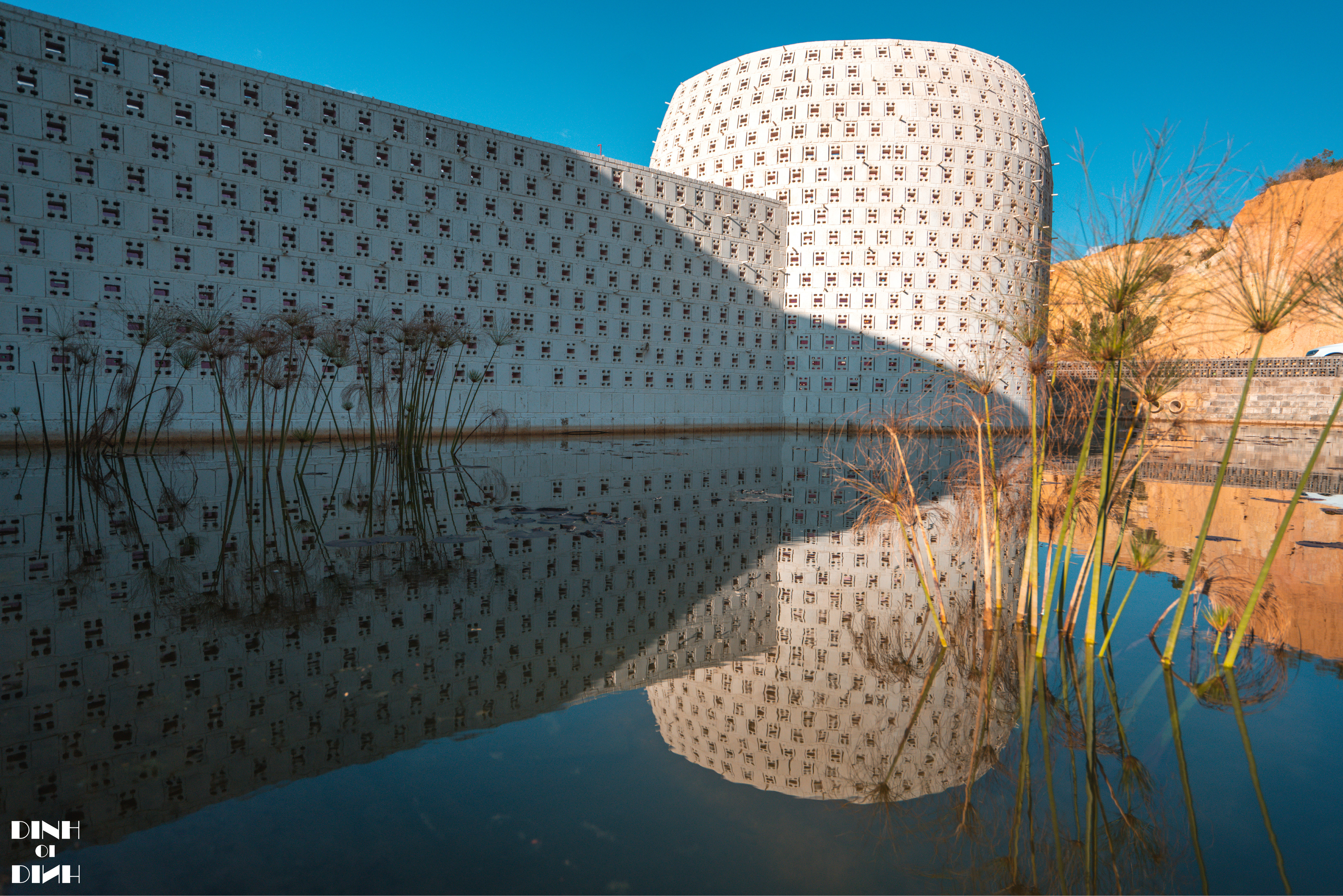 展览馆旁的粉色宫是心里的世界。要进入粉色宫需要走过一条长长的走廊,粉色宫就是一个完整的椭圆,身处其中,就像坐井观天的青蛙一样,因为在周围四周都是墙壁,只有天空是没有限制的。