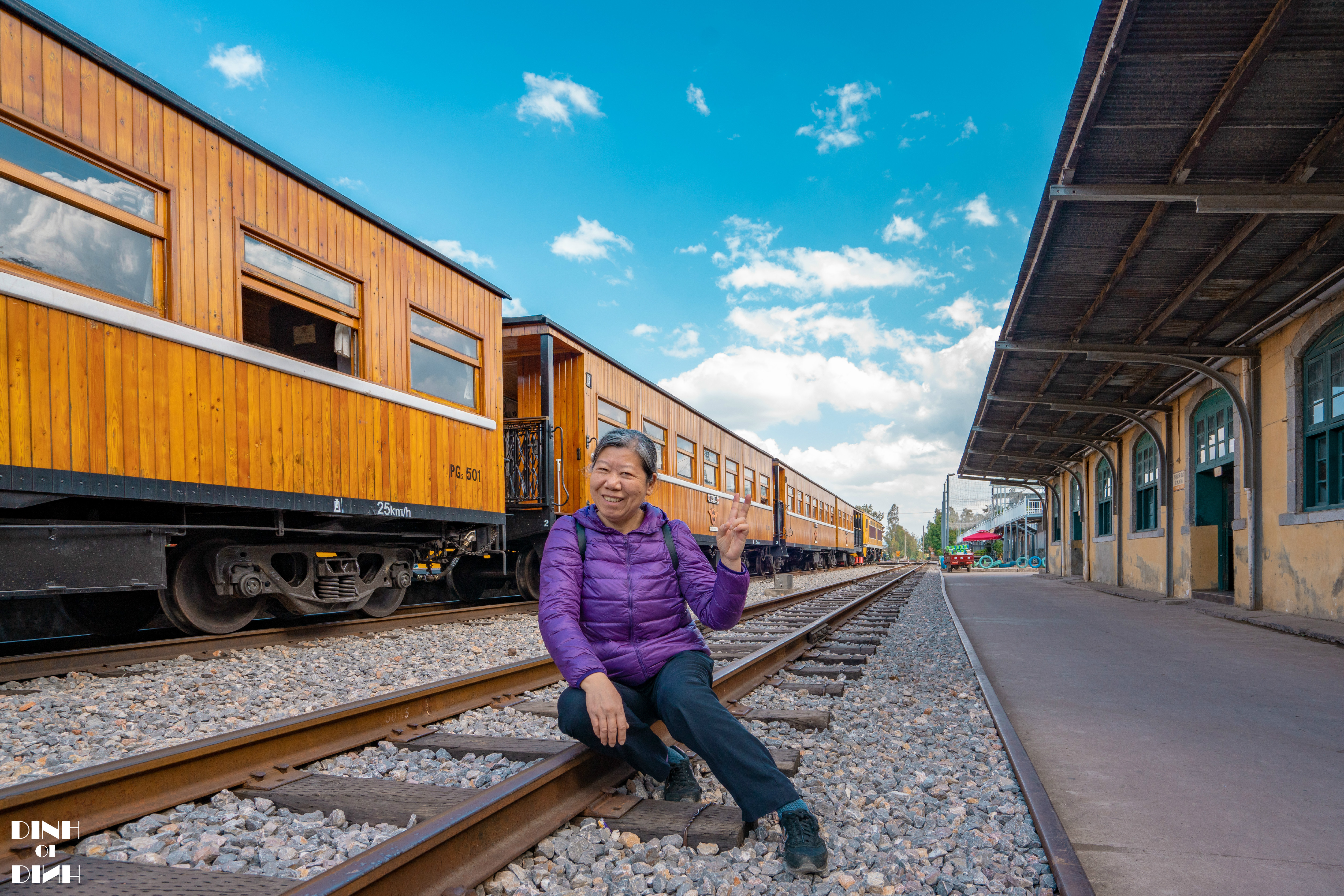 沿着铁路往车站的方向走去,一辆火车头停靠在那里,应该是仿制寸轨机车的火车头,因为最后的3台寸轨机车分别被 中国 铁道博物馆、 云南 铁道博物馆和 上海 铁道博物馆珍藏。