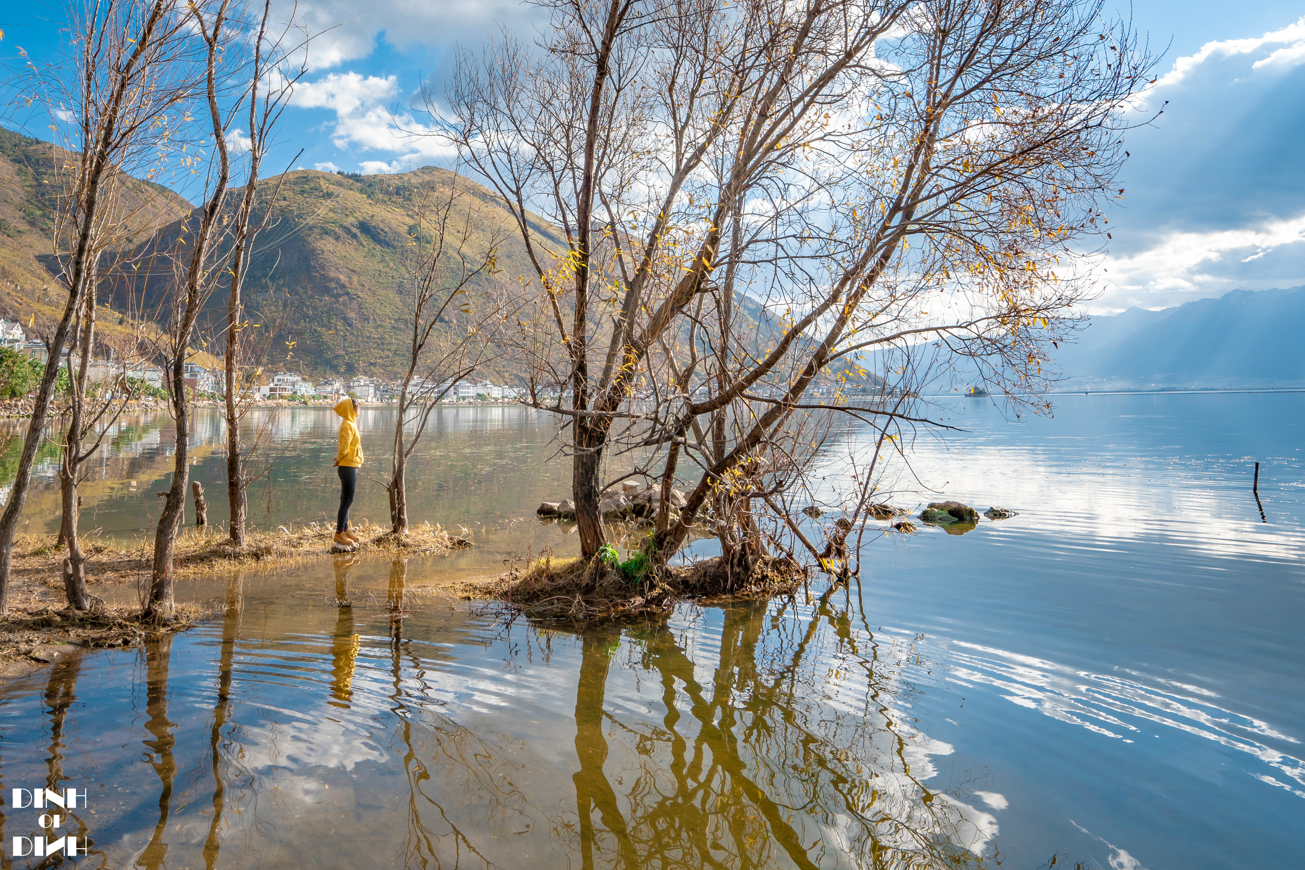 海舌公园之所以叫做海舌是因为它的形状像是一条伸入洱海的舌头,海舌公园距离 喜洲 古镇也是很近的,基本上可以在 喜洲 换马车或者骑着租来的小电驴5-10分钟就可以到了,海舌公园绝的地方是可以直接看到海对面的 双廊 。海舌公园是一个湿地公园,这里很多在水中的树,或者被水围成孤岛的小树。因为在维保,所以只能在门口不远处的海边看看,不能走到海舌的尖尖