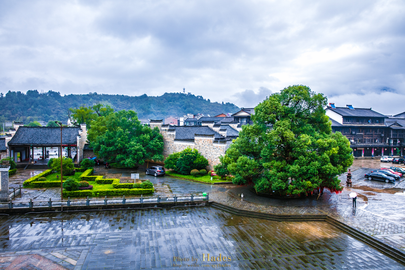 上清古镇是一个具有千年历史的古镇。位于上清宫景区内。这里道教文化源远流长,名胜古迹众多,民俗风情古仆淳厚。游览车停在古镇前的广场上。这里地势开阔,有一颗巨大的樟树。