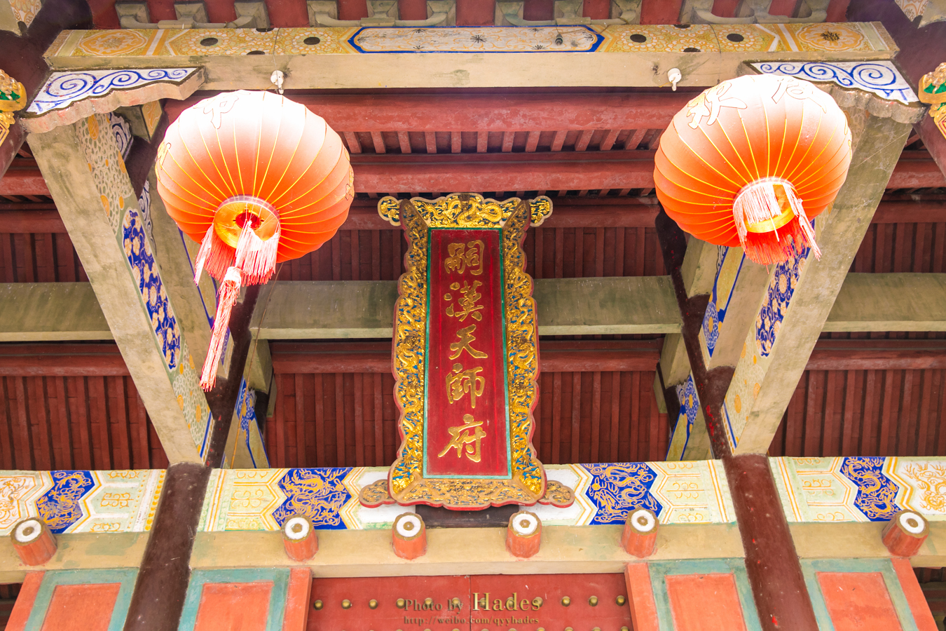第二站我们来到的是大名鼎鼎的天师府。所谓北有曲阜,南有天师府,说的就是这里。天师府是张氏历代起居之地,北靠西华山,门临泸溪河,面对琵琶山,依山带水,气势雄伟。占地3万多平方米,建筑辉宏,尚存古建筑6000余平方米,全部雕花镂刻,米红细漆,古色古香,一派仙气。传言天师府是张盛以及他的历代子孙生活起居之所和祀神之处,被称为正一派的祖庭和元明两朝管理道教事务的办公机构。