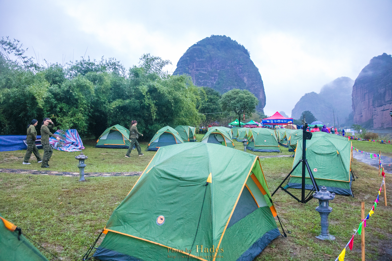 来的时候,正好是龙虎山一年一度的帐篷节。而今年已经是第十二届了。景区的河滩上绿地上,很多地方都搭建了露营的帐篷,可惜天公不作美,这几天一直在下雨,晚上不能住帐篷里体验混帐的赶脚了!