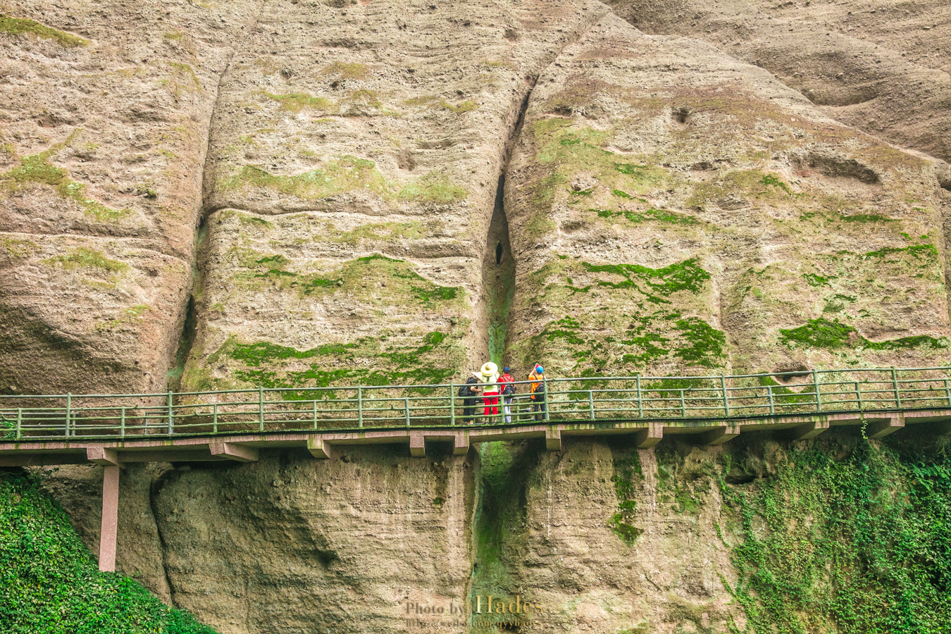 栈道上一群人围观的是龙虎山又一崖壁奇景,叫做少女之春。这个跟昨天欣赏的大地之母有着异曲同工之妙,只是小了些,色泽也鲜艳了些。
