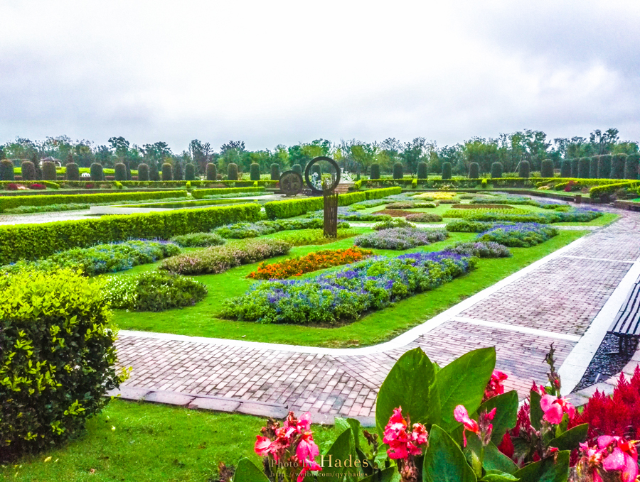 疏林下、小径边,盛开的郁金香、薰衣草,按曲线飘带图案向前延伸,荷兰库肯霍夫公园原型风格在此定格,并被改良提升。花带与乔木虚实相间的关系更符合东方审美,达到了步移景异的效果。