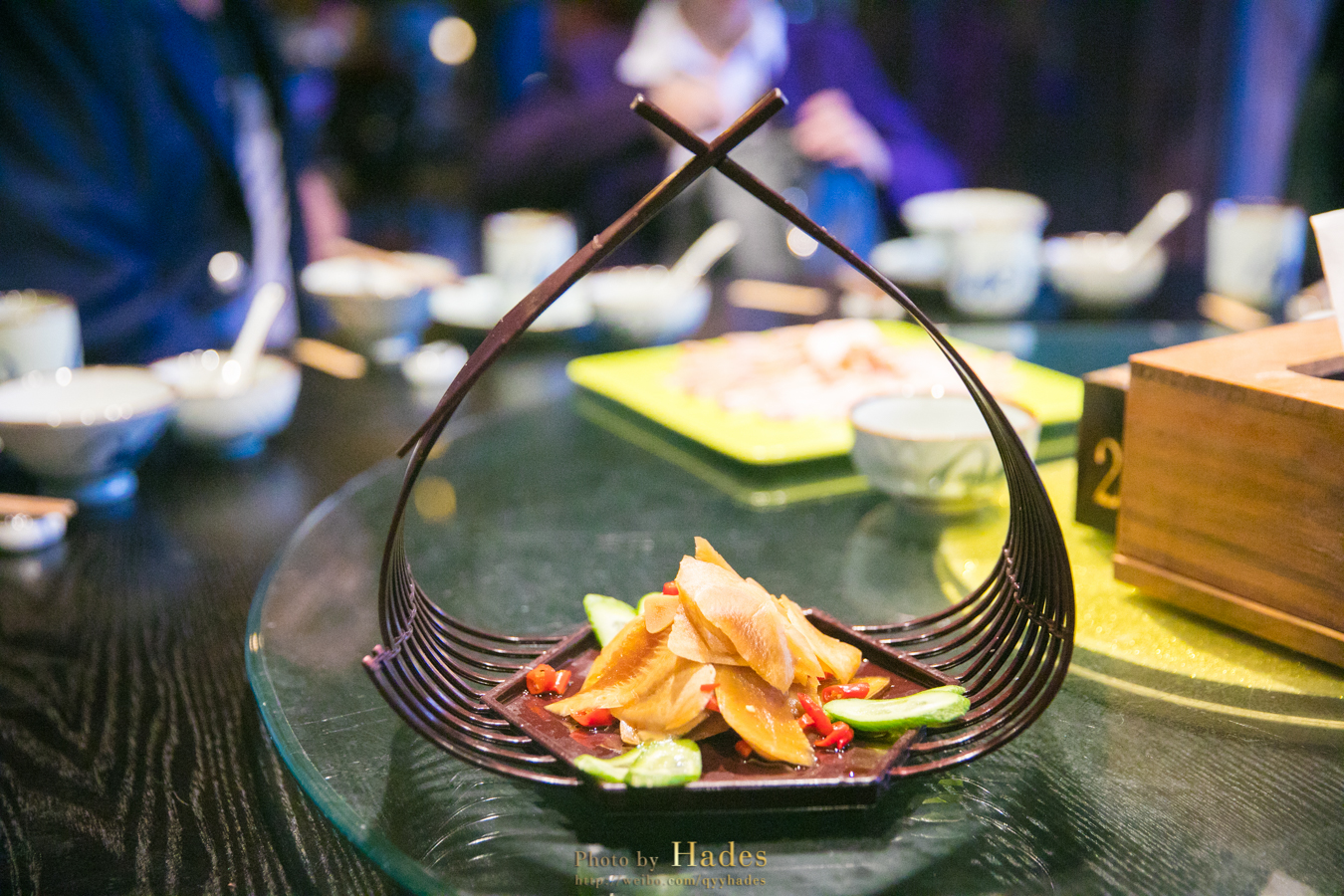 这道菜是主题餐厅的主打菜肴,叫做李逵牛肉。牛肉是用黄纸包裹的,很有水泊梁山的感觉。牛肉被切的很薄,肉质脚软,一点都不费牙口,非常的香嫩。