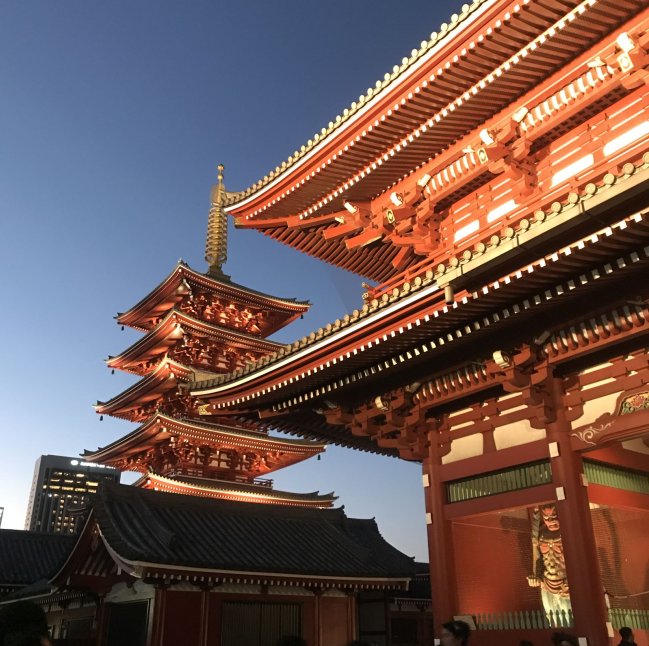 浅草寺—是东京都最古老的一座寺庙。起初,浅草寺是因两渔民在捕鱼时捞起一尊金观音像而建,后几经火灾被毁。到了江户时代,德川家康重建了浅草寺,这才形成了现在规模的寺院群落。