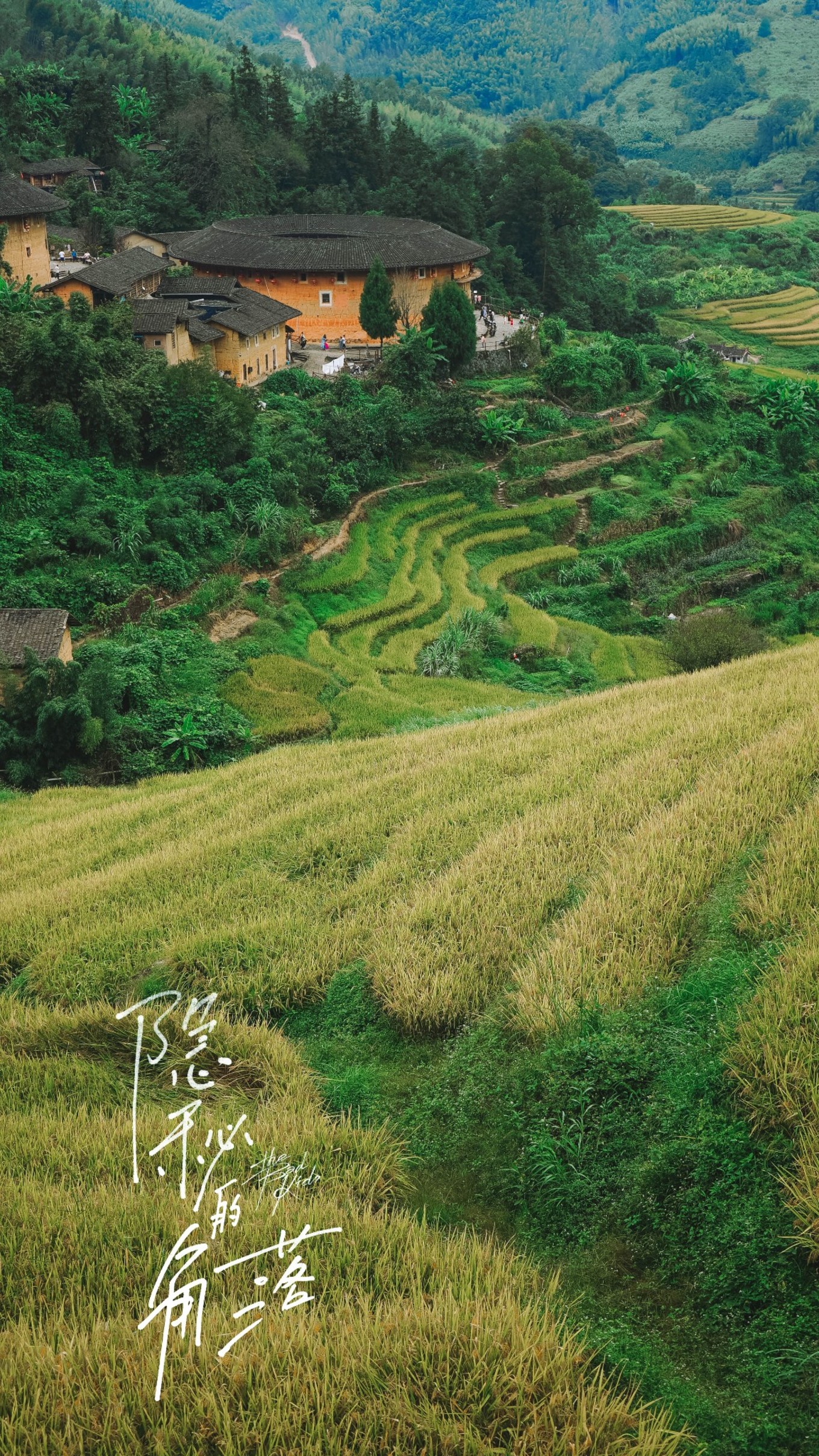 ▲见到 福建 田螺坑土楼群的第一眼,超完美的角度,梯田的水稻也刚好泛黄,颇有“悠然见南山”的意境