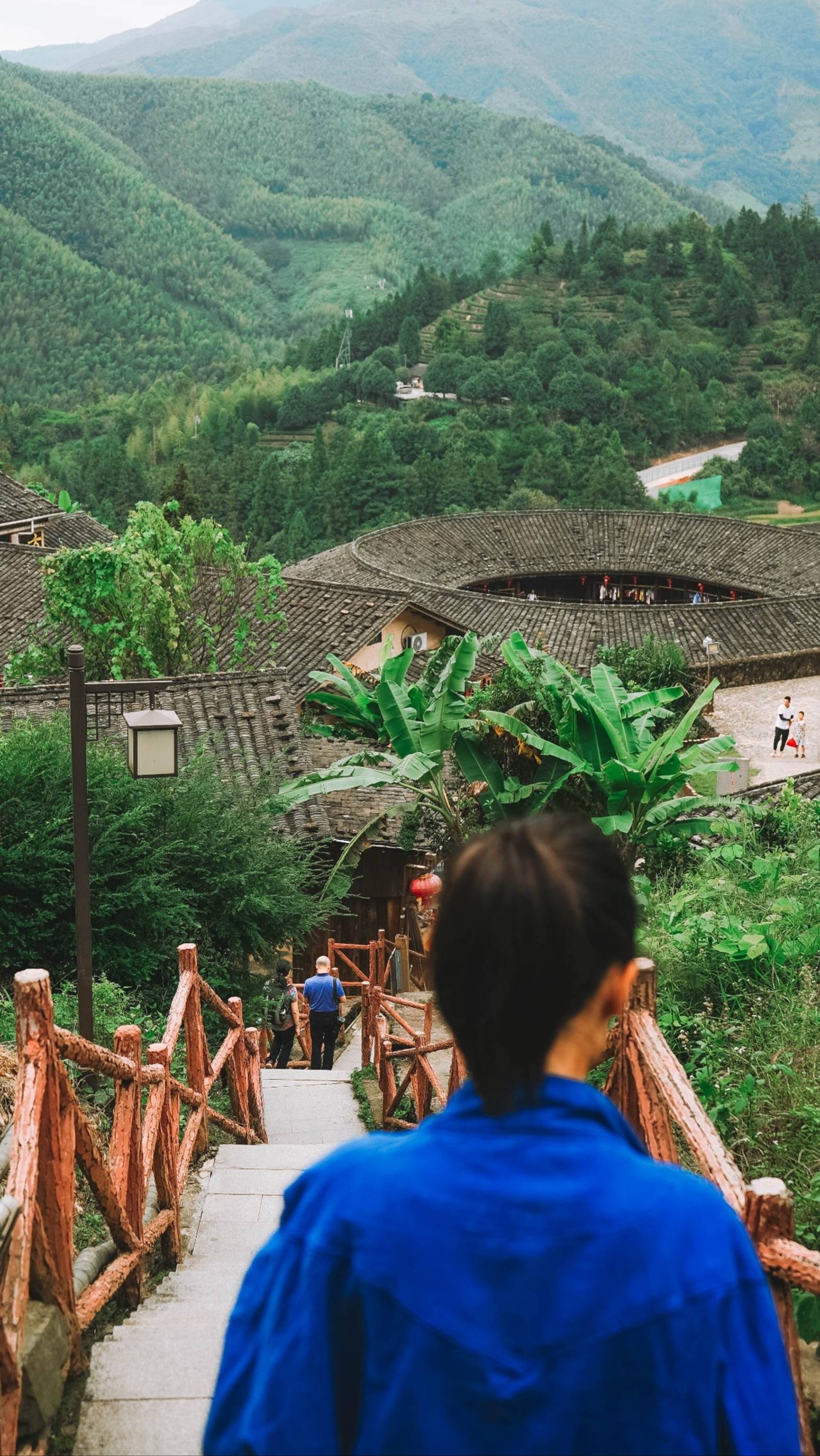 2. 如果想步行去田螺坑的观景台,比起从土楼那里上阶梯,建议走外面的柏油马路,更快也更轻松!我们沿着柏油马路的山道往上走了大概五分钟不到