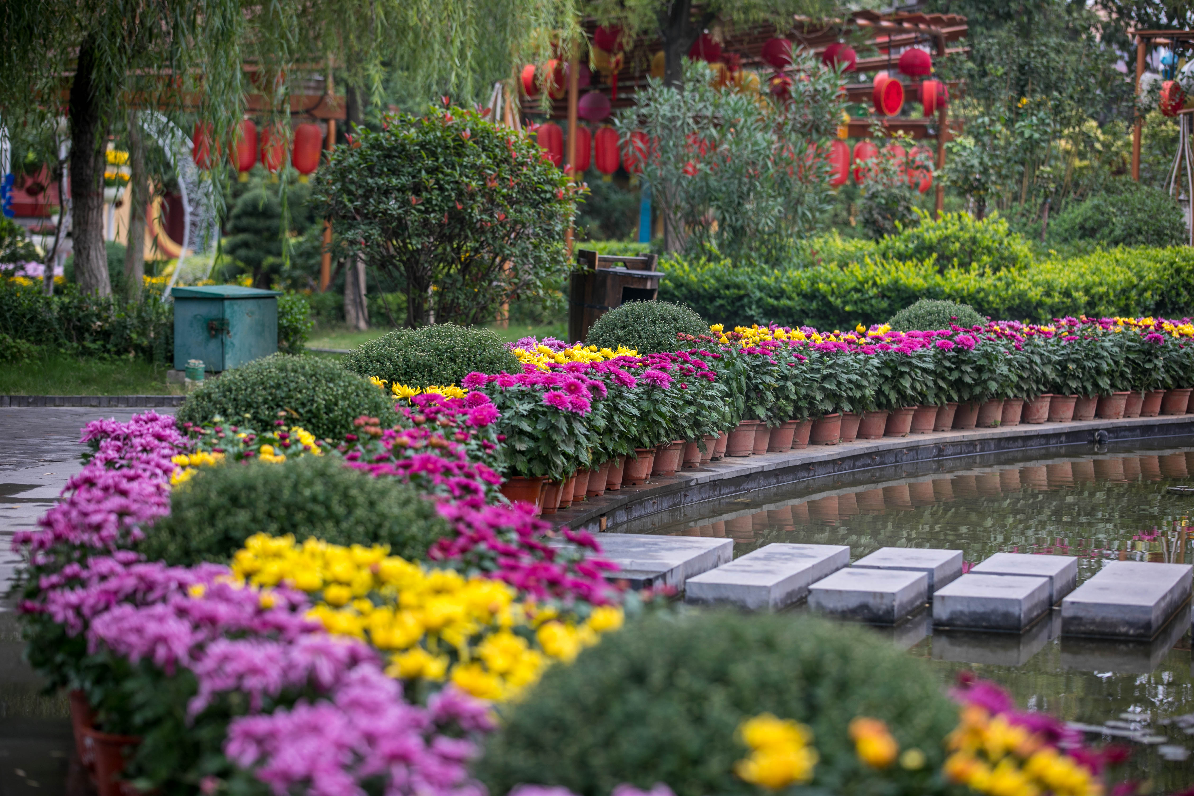 由于清明上河园是此次菊花文化节主会场之一,所以这次布展也别出心裁,利用山水造型在园内布置了多个展区,满足不同喜好的游客,也充分展示了菊花的多元化艺术表现力和国际菊花品种及栽培形式的多样性,在赏菊中了解菊文化。