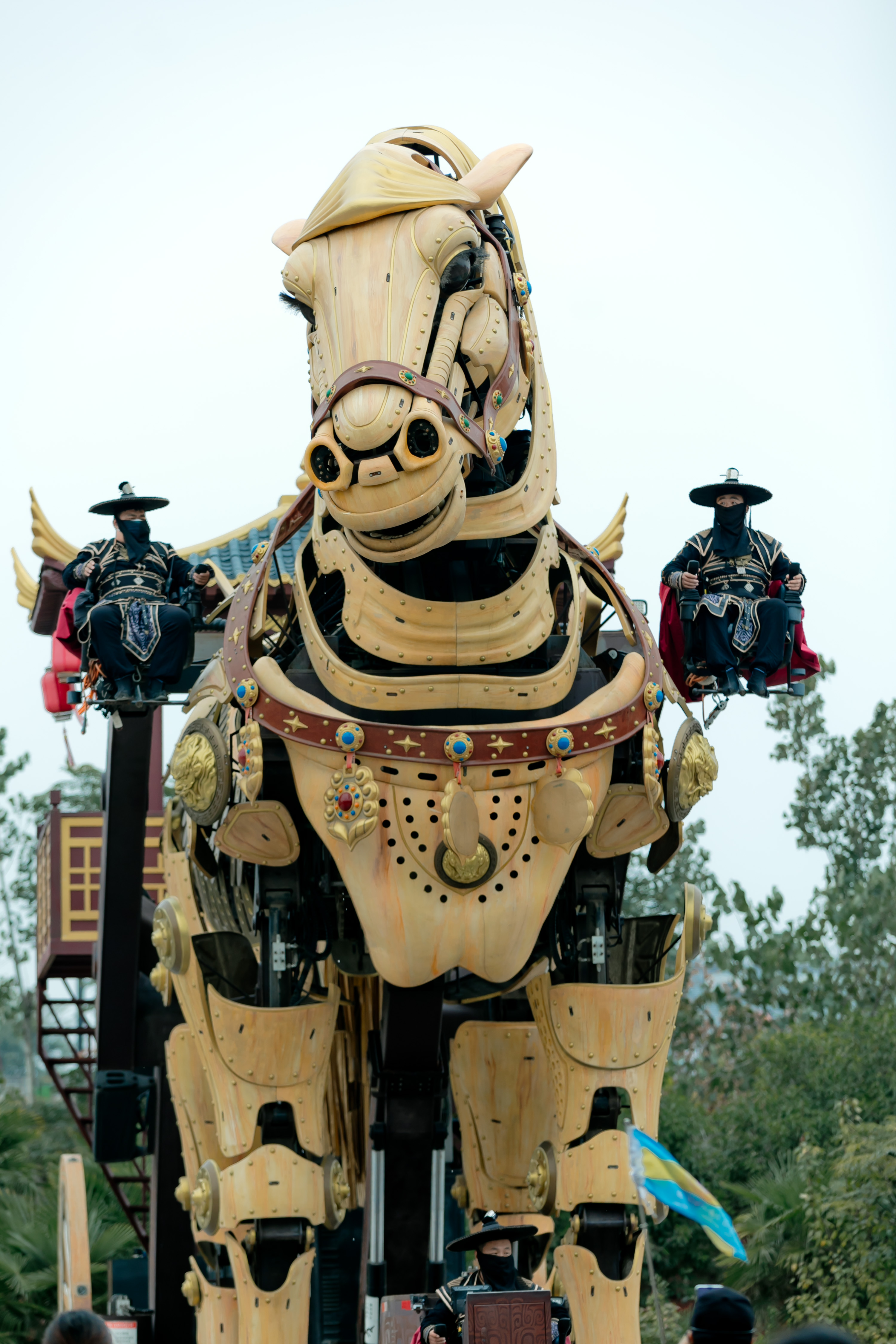 上午九点,颇具仪式感的开园仪式,隆重而热闹,在迎宾门外的广场上,车马队列、锣鼓喧天,包拯率领护卫王朝、马汉、张龙、赵虎等一班人向各位游客致欢迎礼,欢迎来自全国各地的游客。