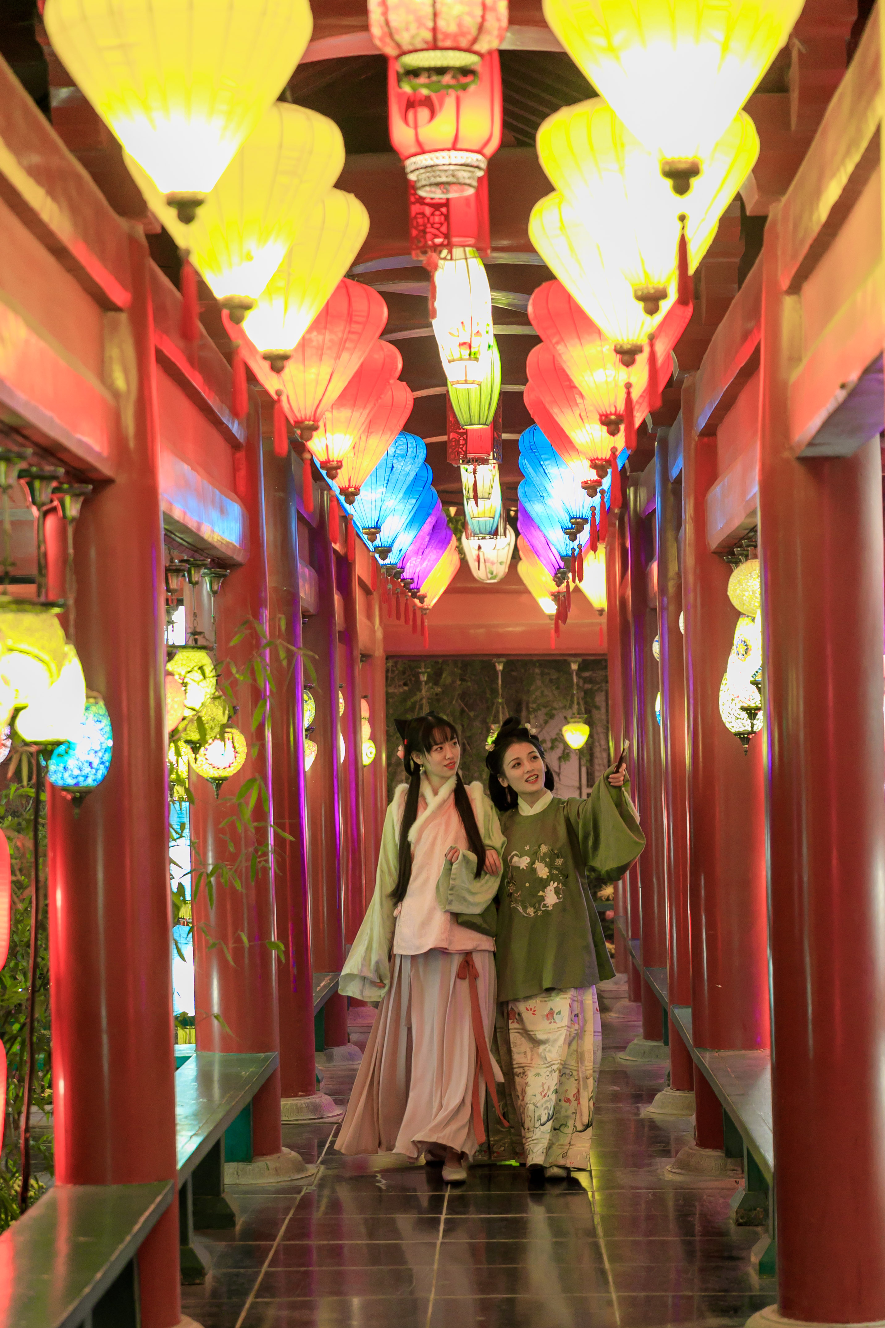 园区内的亭台楼阁、竹林、鸳鸯桥,都是非常适合拍照的地方,穿着宋装,打着油纸伞,来一次穿越之旅吧!