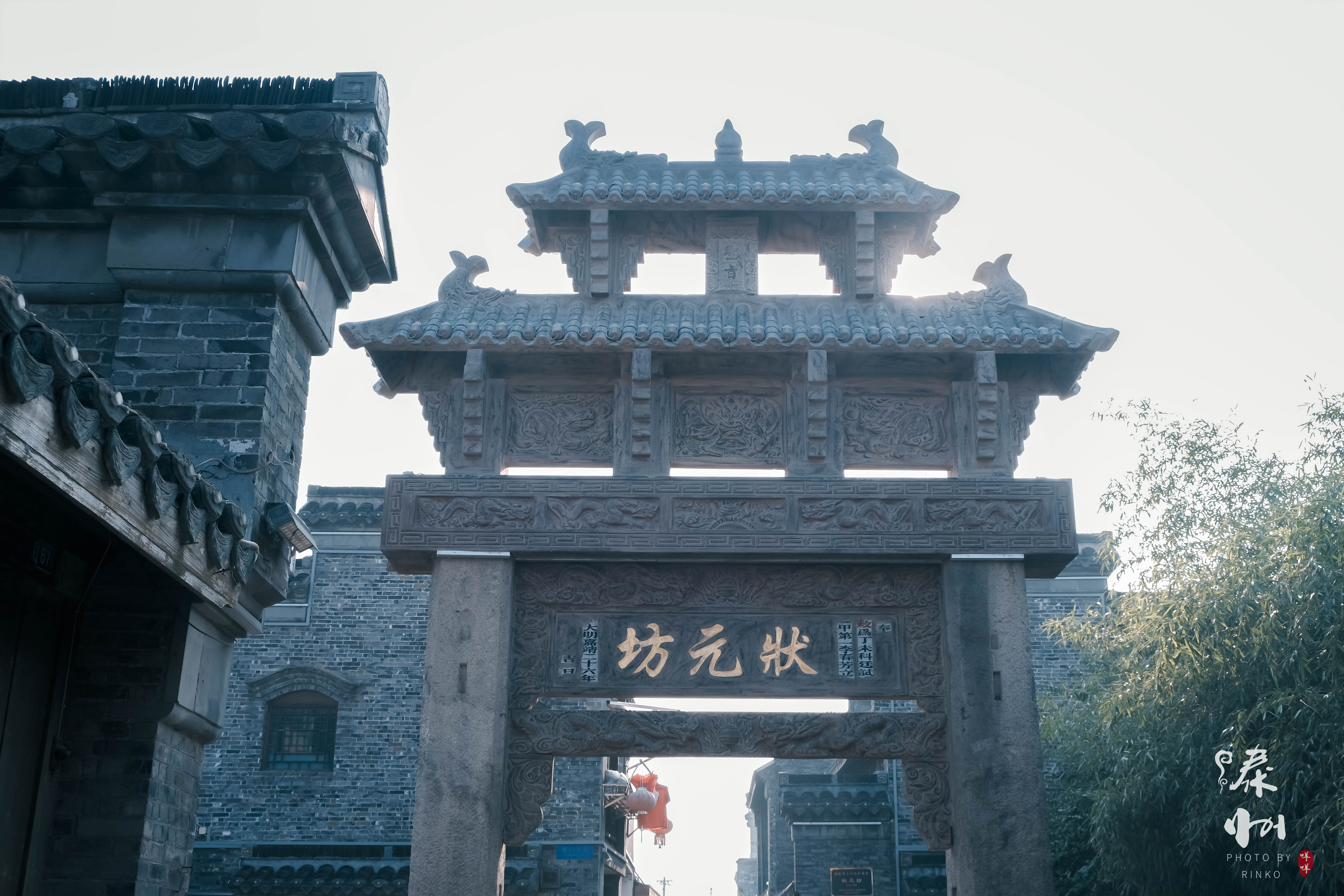 从梅园出来,穿过马路便是老街,这里也是必去之地,青砖黛瓦,典型的南方特色街巷,皮包水、水包皮,书店商铺,尽显泰州的市井文化,漫步闲逛,看游人同行结伴,购买一些特产风物,收获颇丰。