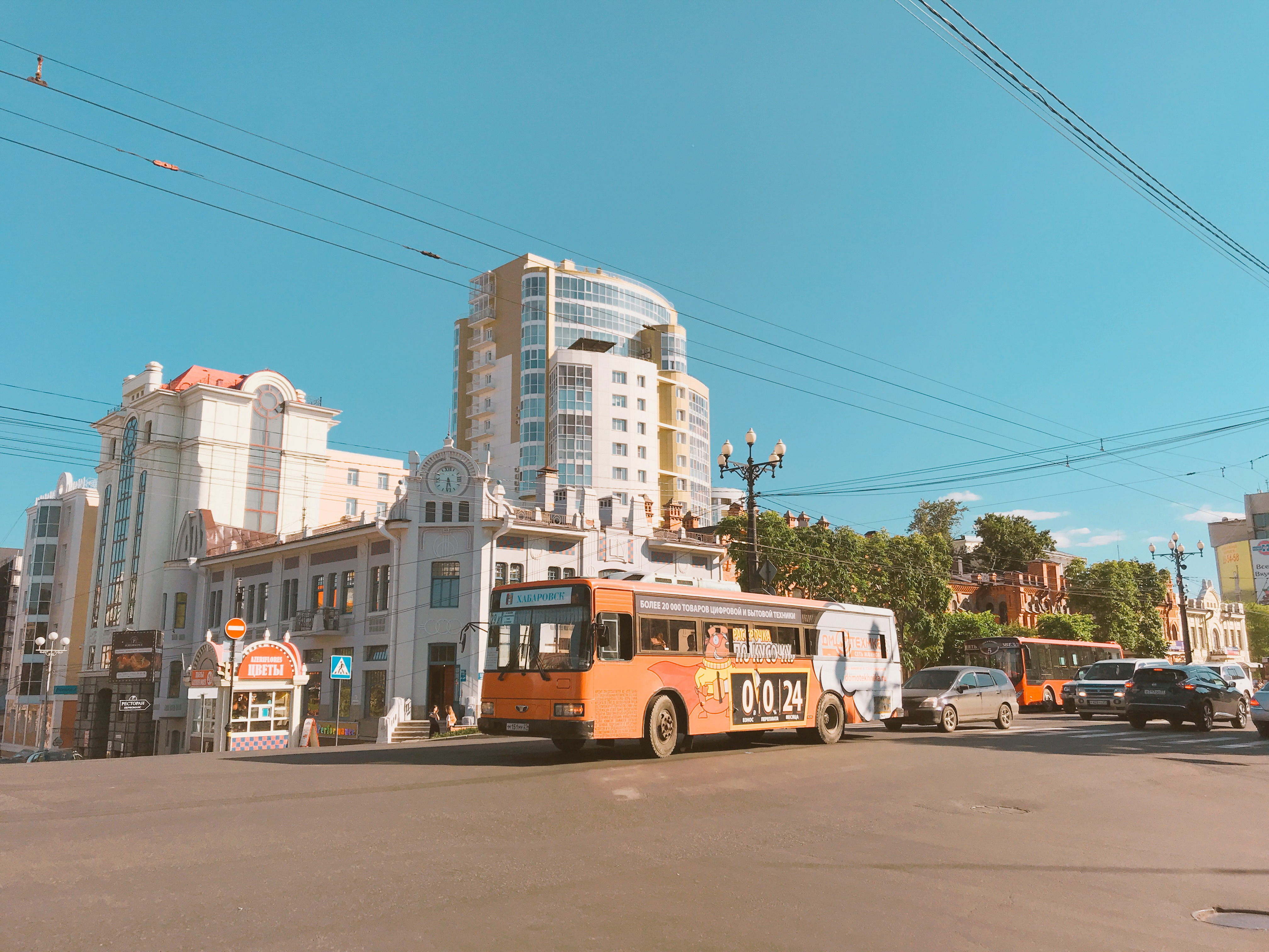 哈巴罗夫斯克就像30年前的中国,老式的公交车在城里划过一辆又一辆,在马路上还能看到已经停产的车子,时间在这边似乎不会改变一切。