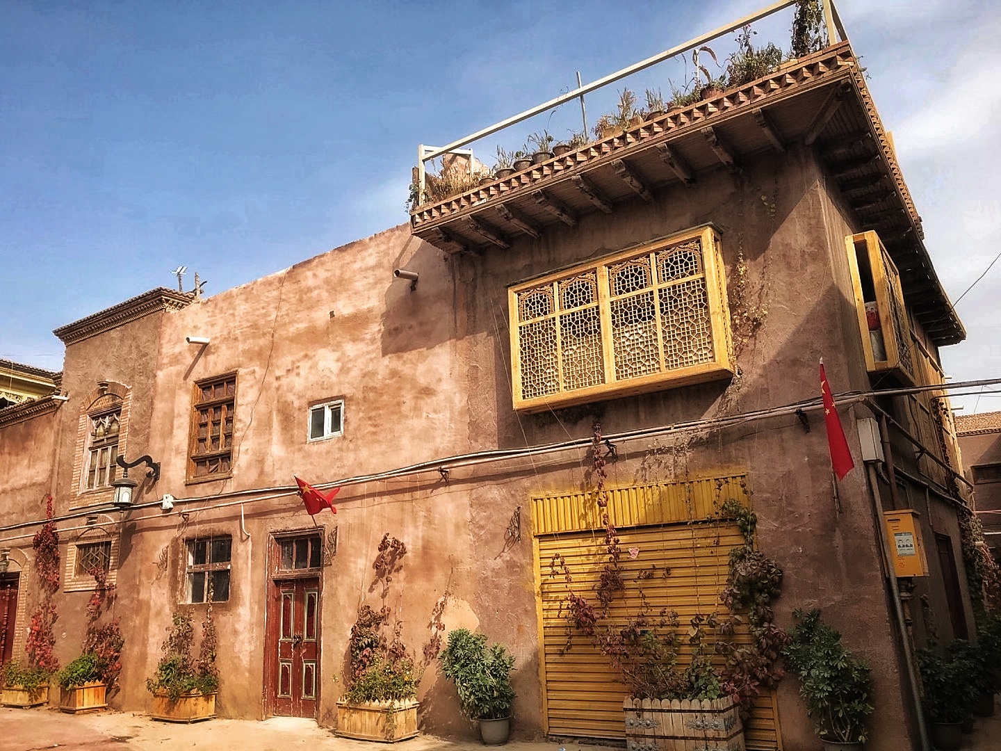 走在老城的街上,精美的雕刻,多彩的颜色,浓郁的民族风情,灿烂的历史文化,时光流转,一眼万年。在这里,每一处建筑都彰显细节,每家每户都有自己的设计,每家每户都有不同的呈现。阳台上有花,土墙也被绿植覆盖,我可以感受得到他们对于生活的热爱。在这里,孩子们在街巷里玩耍,老人们在家门口聊天,临街的店铺里卖烤包子的老奶奶卖烤馕的老爷爷,制作手工挂毯的古丽,还有街边的技艺匠人们,让这里看上去充满了烟火气息。沉醉在这座梦转千遍的丝路古城,让时光在这里慢慢的流淌。