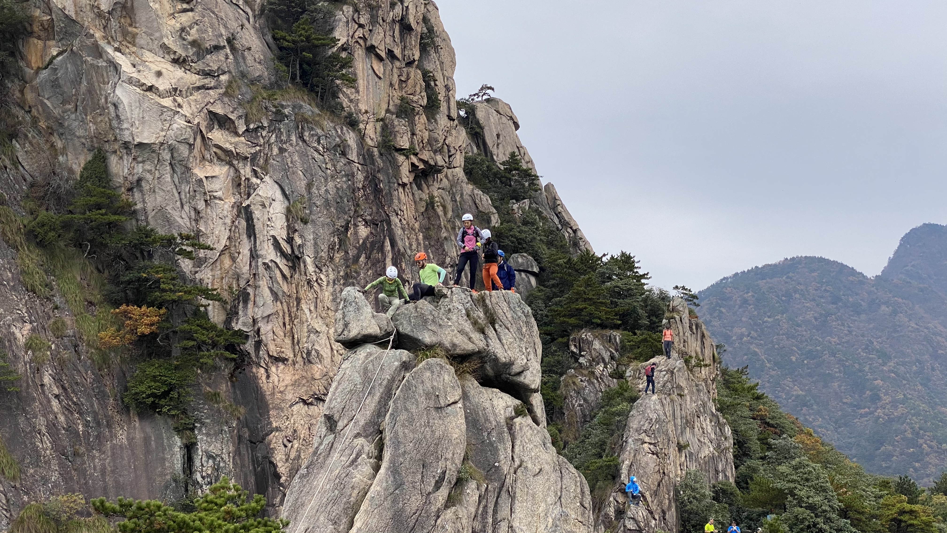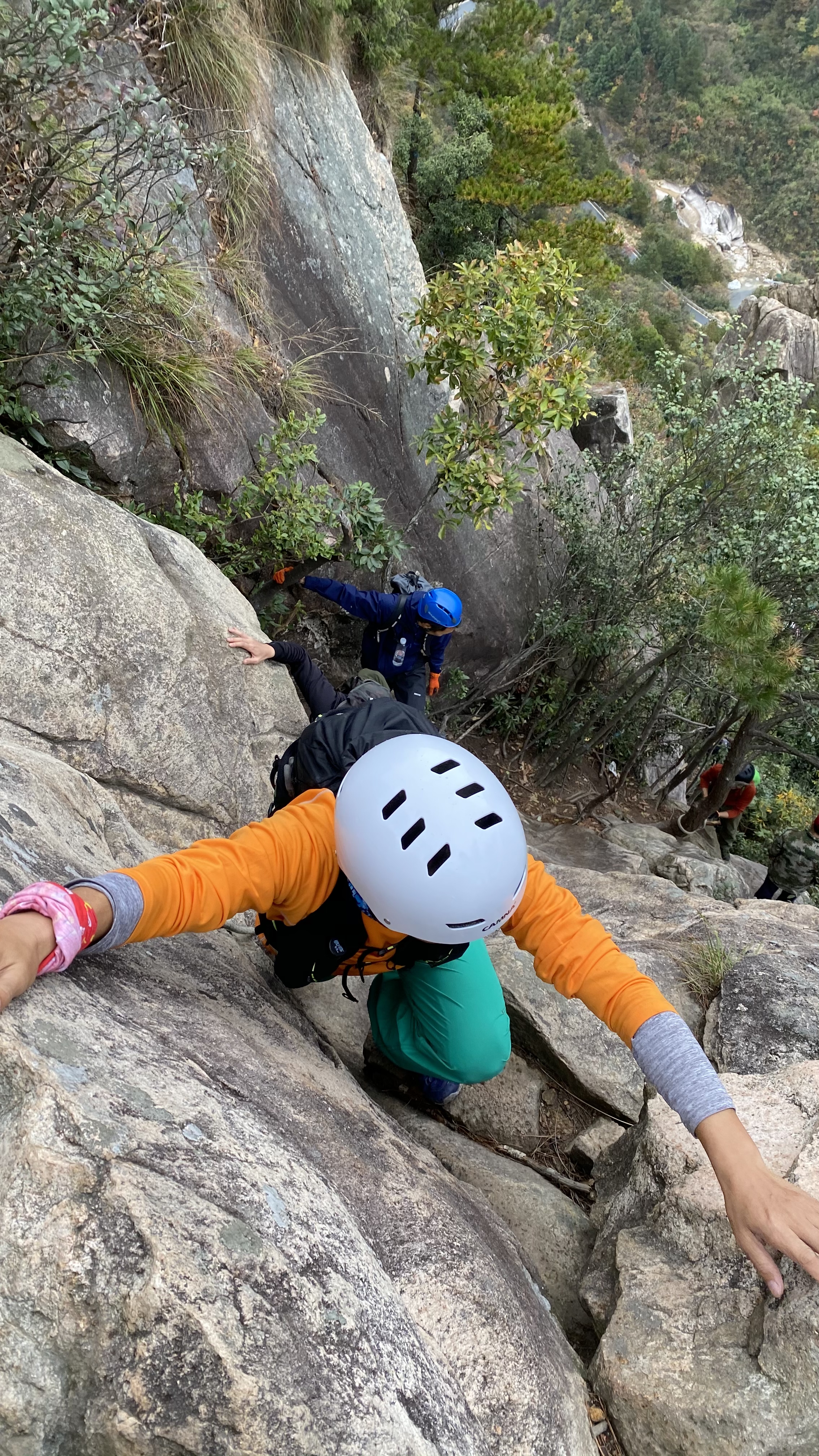 戴上全新的安全帽,我们出发吧,与之共舞。豺狗狼尖全程只有大概两公里,基本上都是在进行着攀爬,四处绳索五次攀爬我们就可以可以站上豺狗狼尖🐺,可以装酷啦。