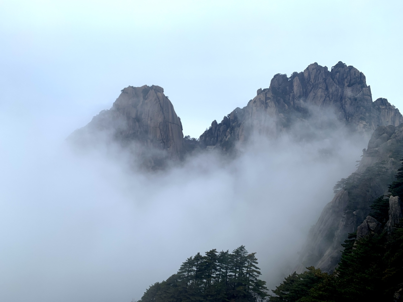 去黄山的那天,大雾,感觉进入异空间。从南大门进山,提前在黄山旅游官网买了三合一票,慈光阁车票,玉屏索道票,还有景区门票。比较方便。注意:下山的时候最好还是从南大门下山,走云古索道,我们当时比较懵懂,从北大门下山,结果回黄山市内很不方便,没有那么多旅游大巴。如果真想走,可以找人拼车,也可以等下午2点,北大门附近有公交车到南大门长途车站。