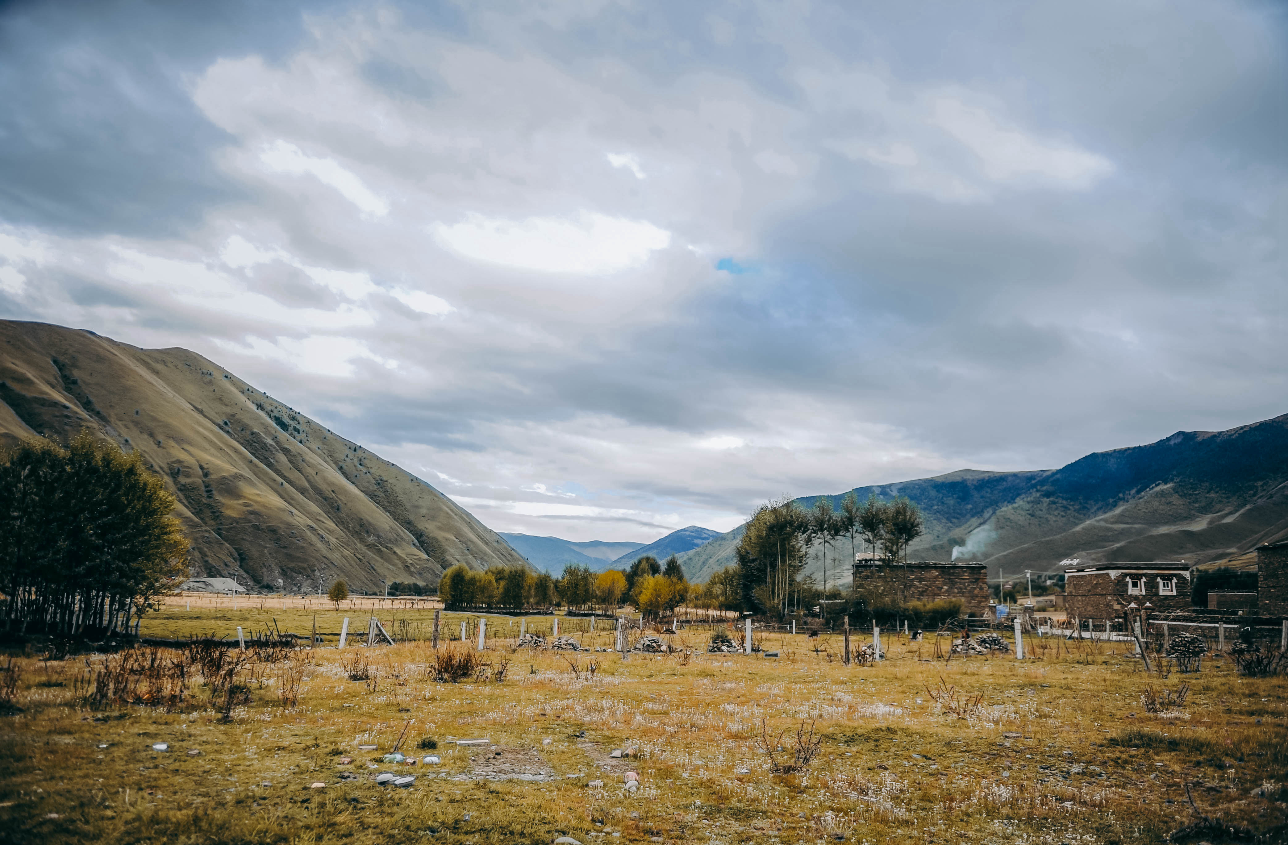 新都桥有很多河,但却没有一座叫“新都桥”的桥,这里其实是川藏线南线和川藏北线的槎岔路口,更像是个驿站式的地方,藏式碉房散落在山下的河谷里。