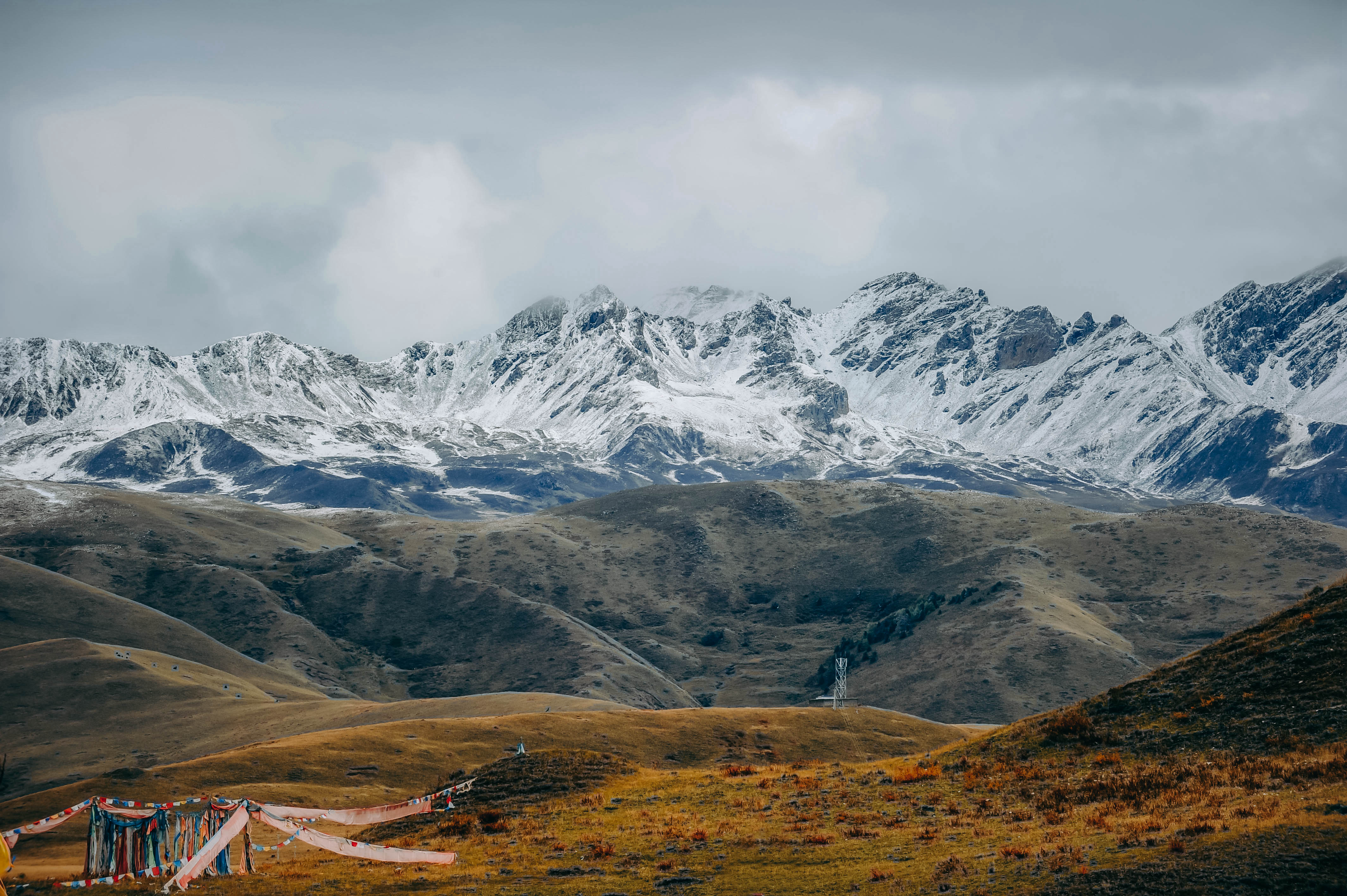 虽然面积与内蒙古大草原不可同日而语,但川西草原的独到之处在于这里的草原常与雪山遥遥相望。在塔公草原,目光越过草地上的河流、丘陵,飘扬的经幡和藏式的碉房,便能望见云雾缭绕中的雅拉雪山。