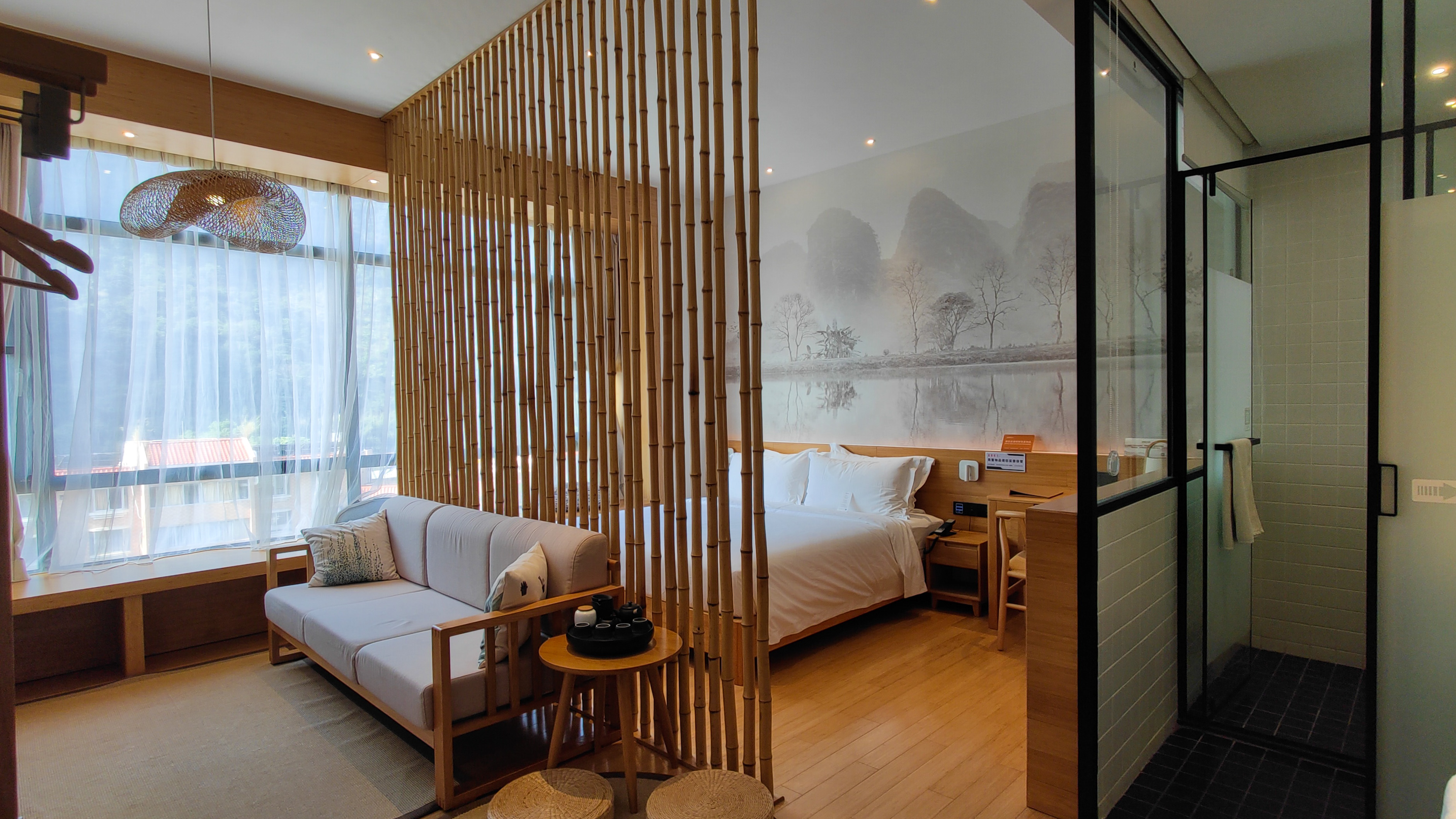 房间内也是以竹和木为主题,床品舒服,室内干净卫生,卫生间干湿分离,都是我喜欢的。