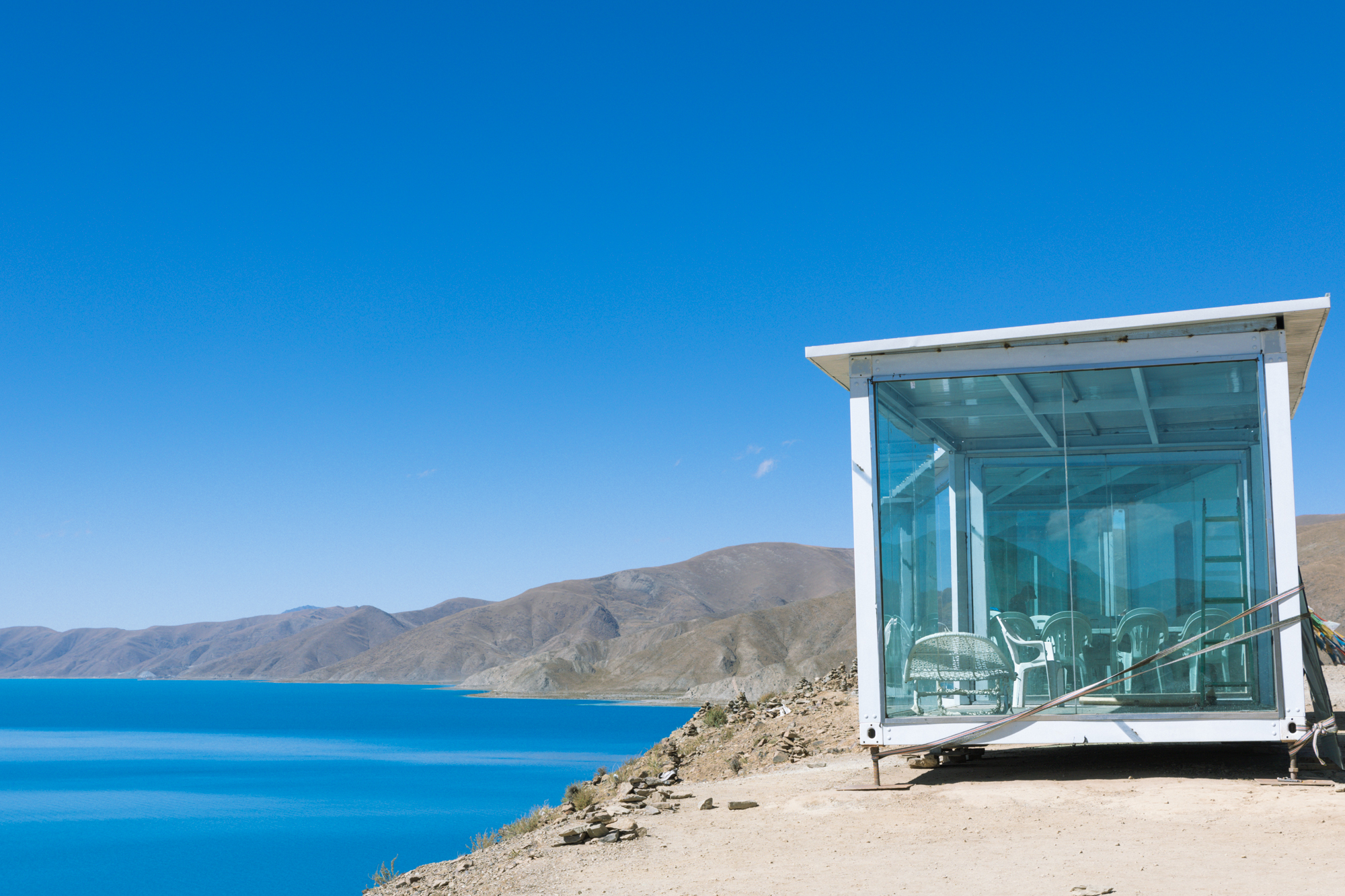 私家观景台在一处山坡山,正在造空中餐厅,建成后你可以在透明的房间中一边就餐一边观赏羊湖。不仅口腹之欲得到满足,眼睛更是得到净化。另一方面藏族人民真的挺佛系,一般在这边做生意的都是别省过来的精明人。