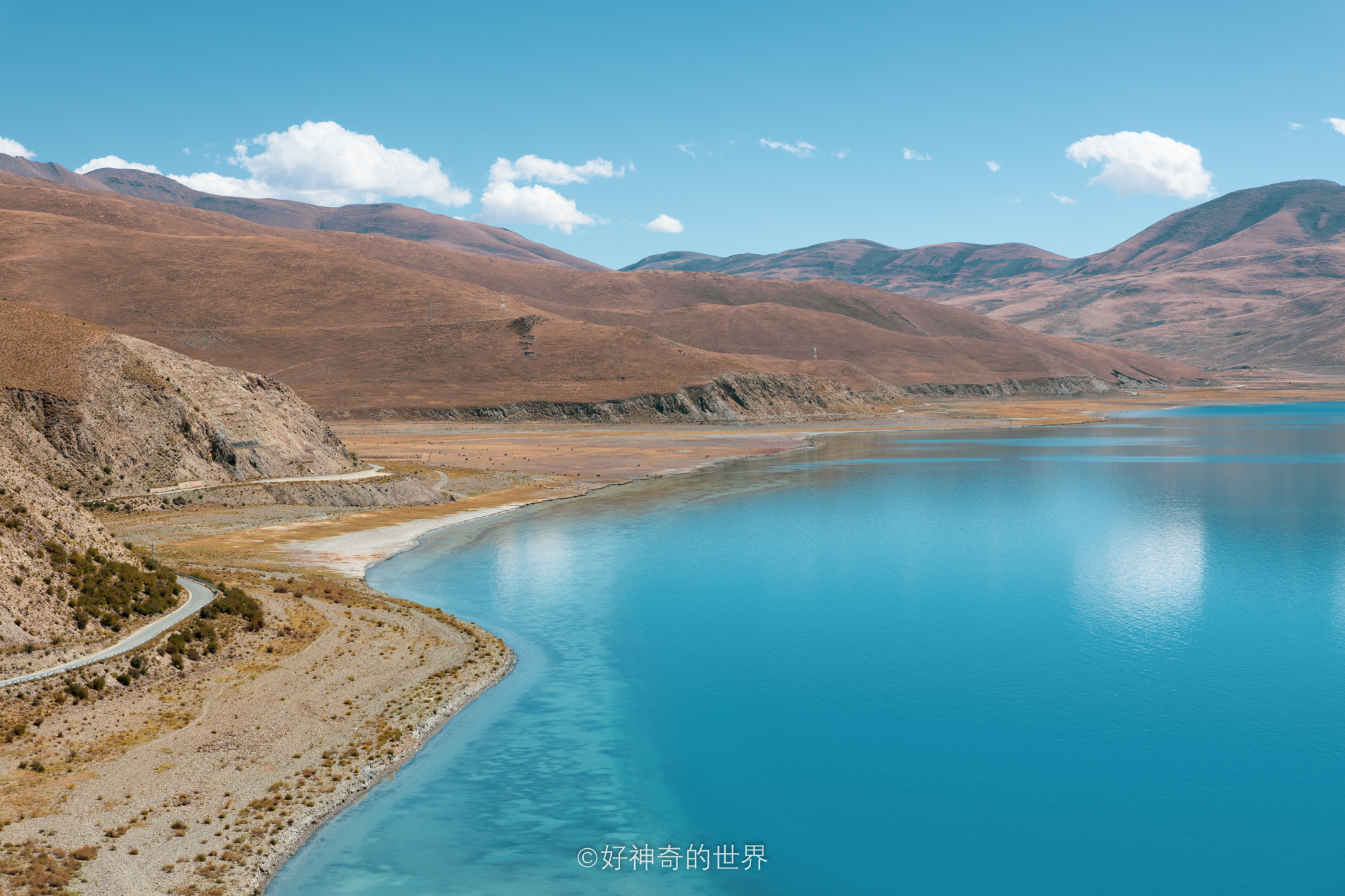 羊卓雍措、纳木措、玛旁雍措被称为 西藏 三大圣湖,而羊湖的碧蓝总是会给人视觉上的强烈冲击,不同地点、不同光照都会让羊湖呈现出不一样的蓝色、蔚蓝、深蓝、浅蓝、孔雀绿,奇异的是每一种颜色都像碧玉一样纯粹。
