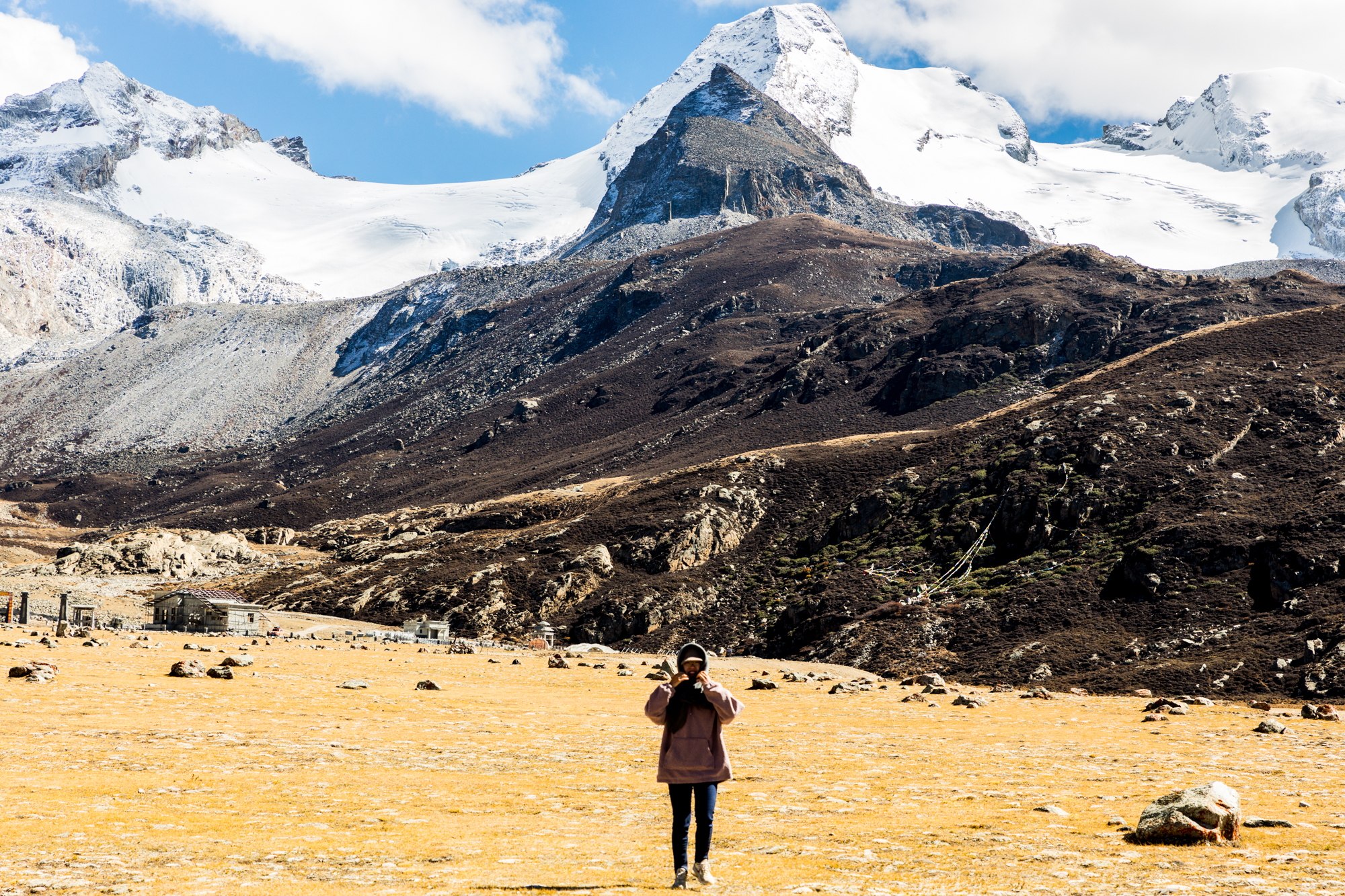 多庆措的卓木拉日是喜马拉雅山脉的第七峰,她的另一边在国内,据说那一段至今无人登顶。而她的确是神女峰,山顶终年积雪、峰顶常被云雾遮盖,让人难以瞧见神女的真容。即便我们这次去的时候天朗气清,神女峰的封顶仍然云雾常伴,犹如仙人的羽衣。