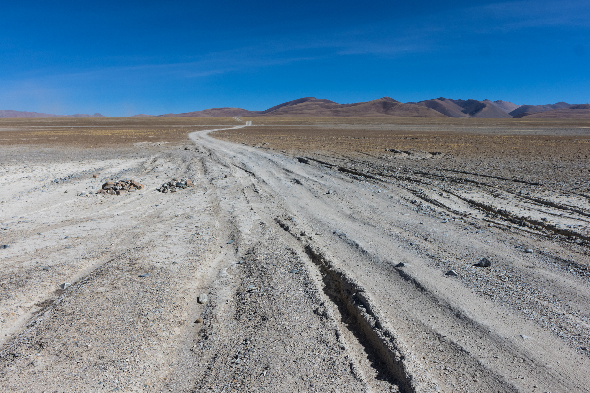 今天照旧还是这样的搓衣板路,而且搓的程度比昨天更厉害,好在周围路况好了很多,基本都是平坦的荒原,不像昨天临着悬崖那么险要。路上又看到了很多熟悉的越野车,娘子军姐姐、小绿、苏A, 普拉 多大队,一辆辆超越我们而去。