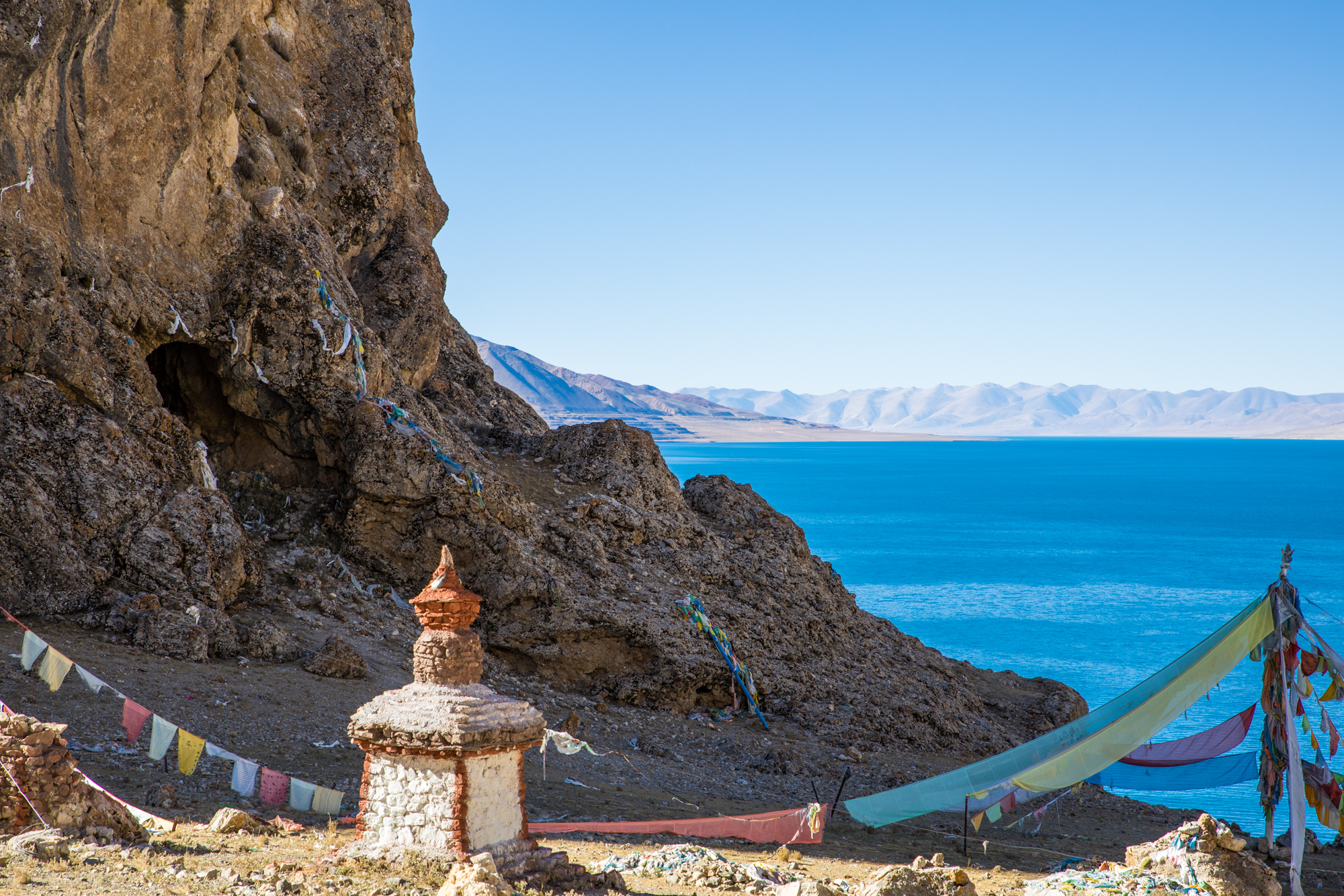岸边只有一条砂石路通往小岛,寺庙就在这座小岛的至高处。说它最孤独是因为寺中只有一名僧人,打水、诵经成了每天的修行,据说他这一辈子都不能离开这座寺庙,一人一寺一世界,就这样遗世独立与羊卓雍措湖畔。我很难想象在这么一个与世隔绝的地方,坚守一辈子是怎样的信念与坚持,也许似孤独亦不孤独。