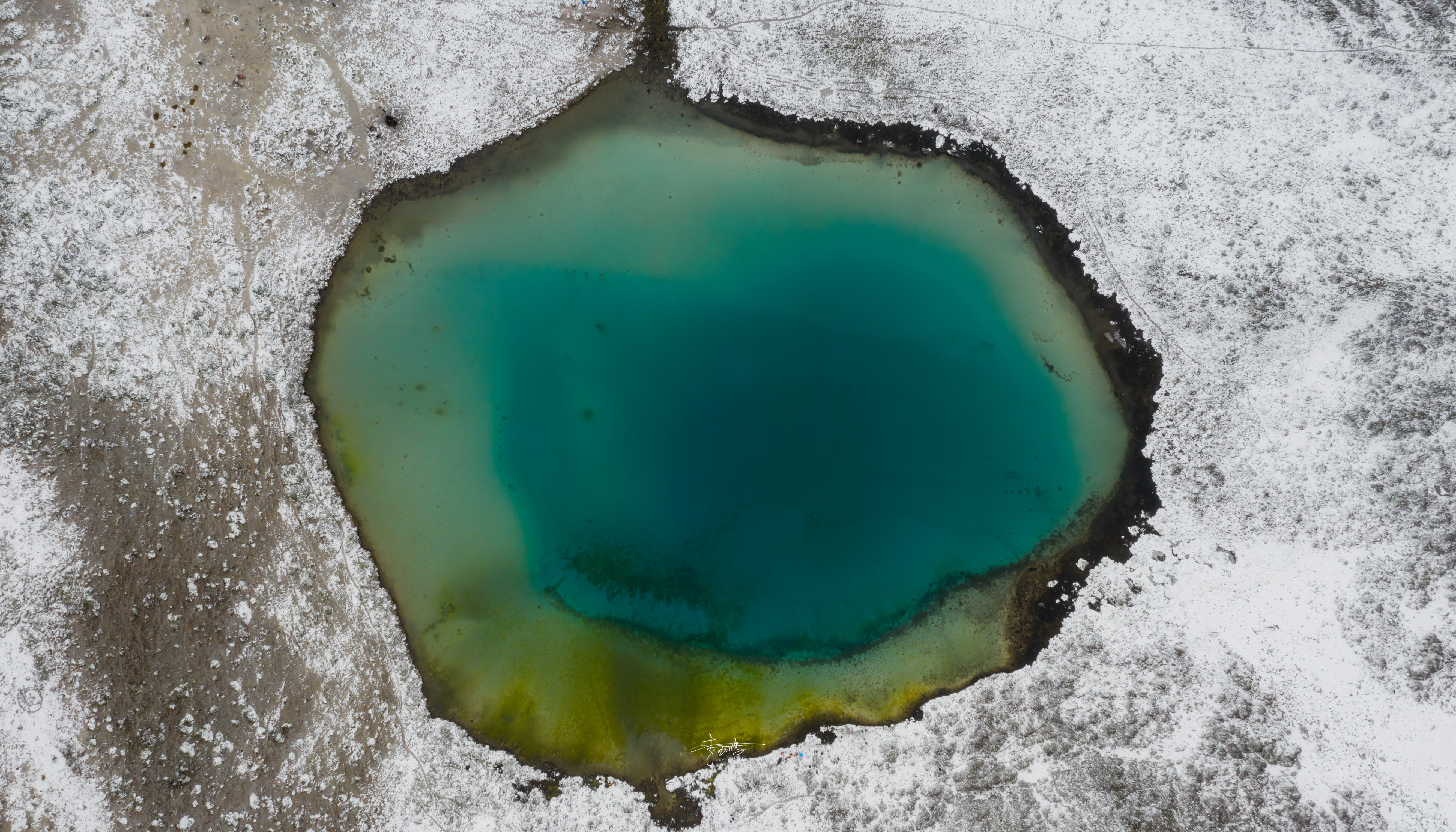 航拍冷噶错下我们的露营地,最大的那顶是营地帐
