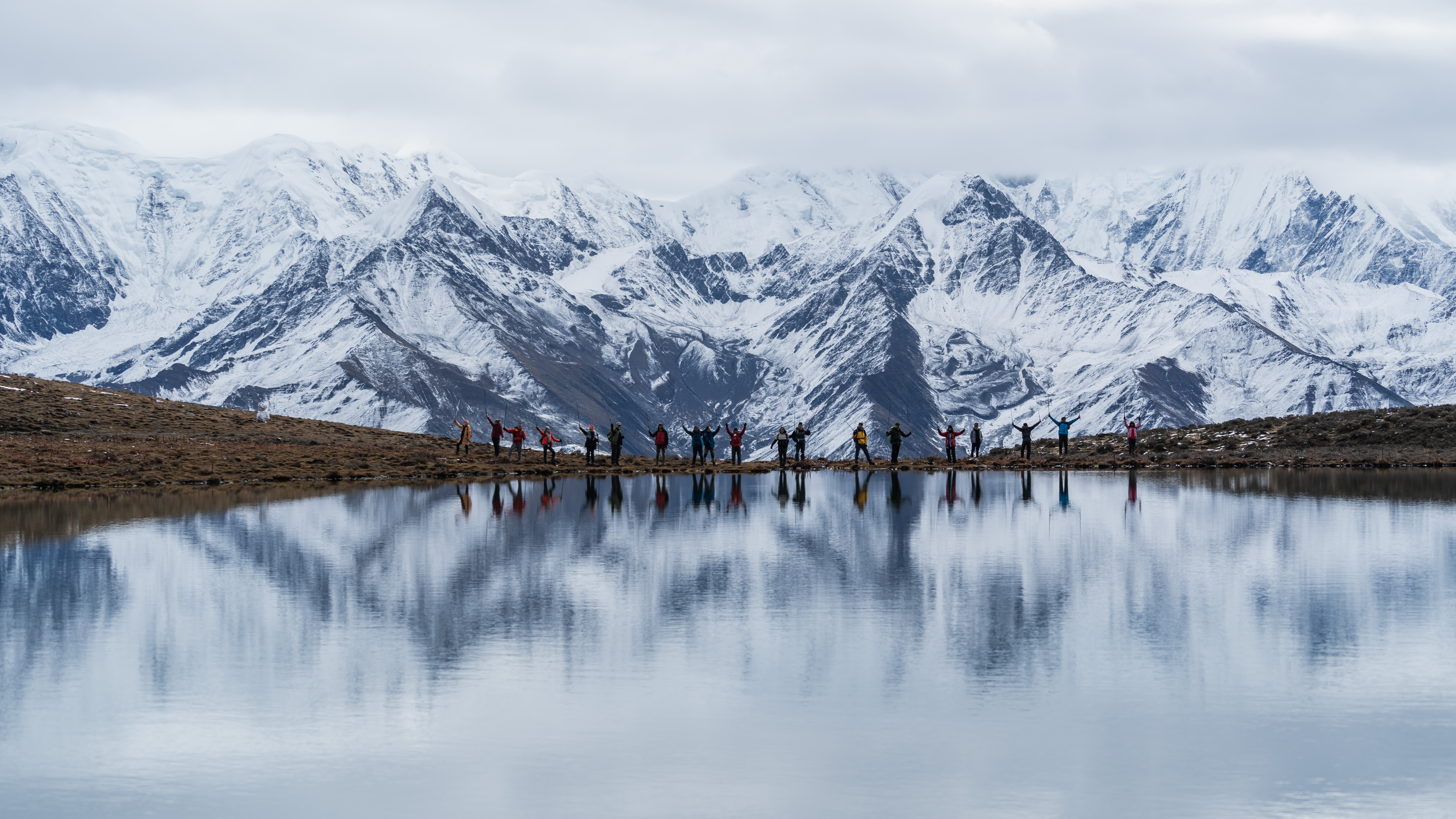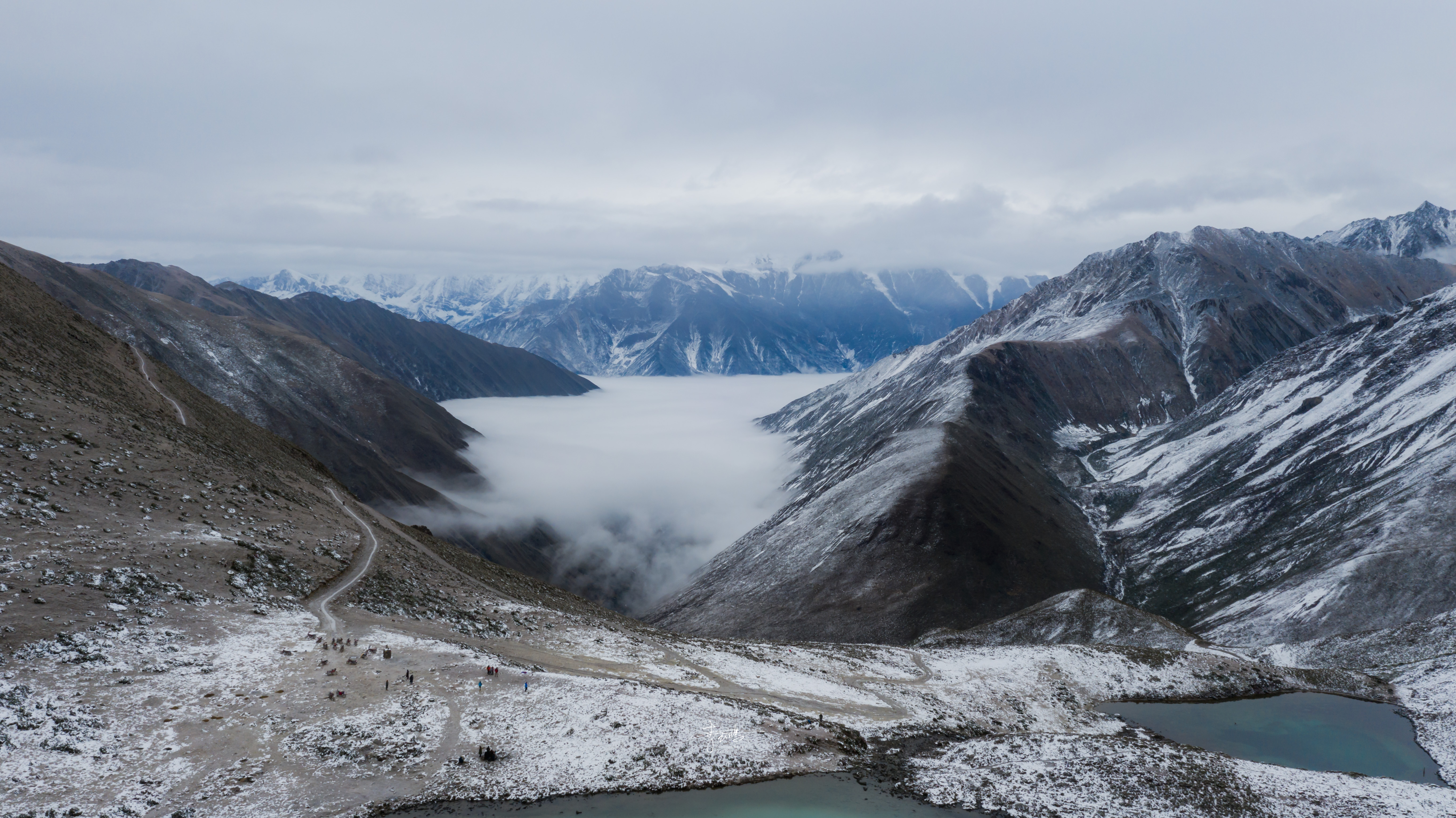 贡嘎神山之镜+冷噶错,云层遮挡下,主峰未露出真面目