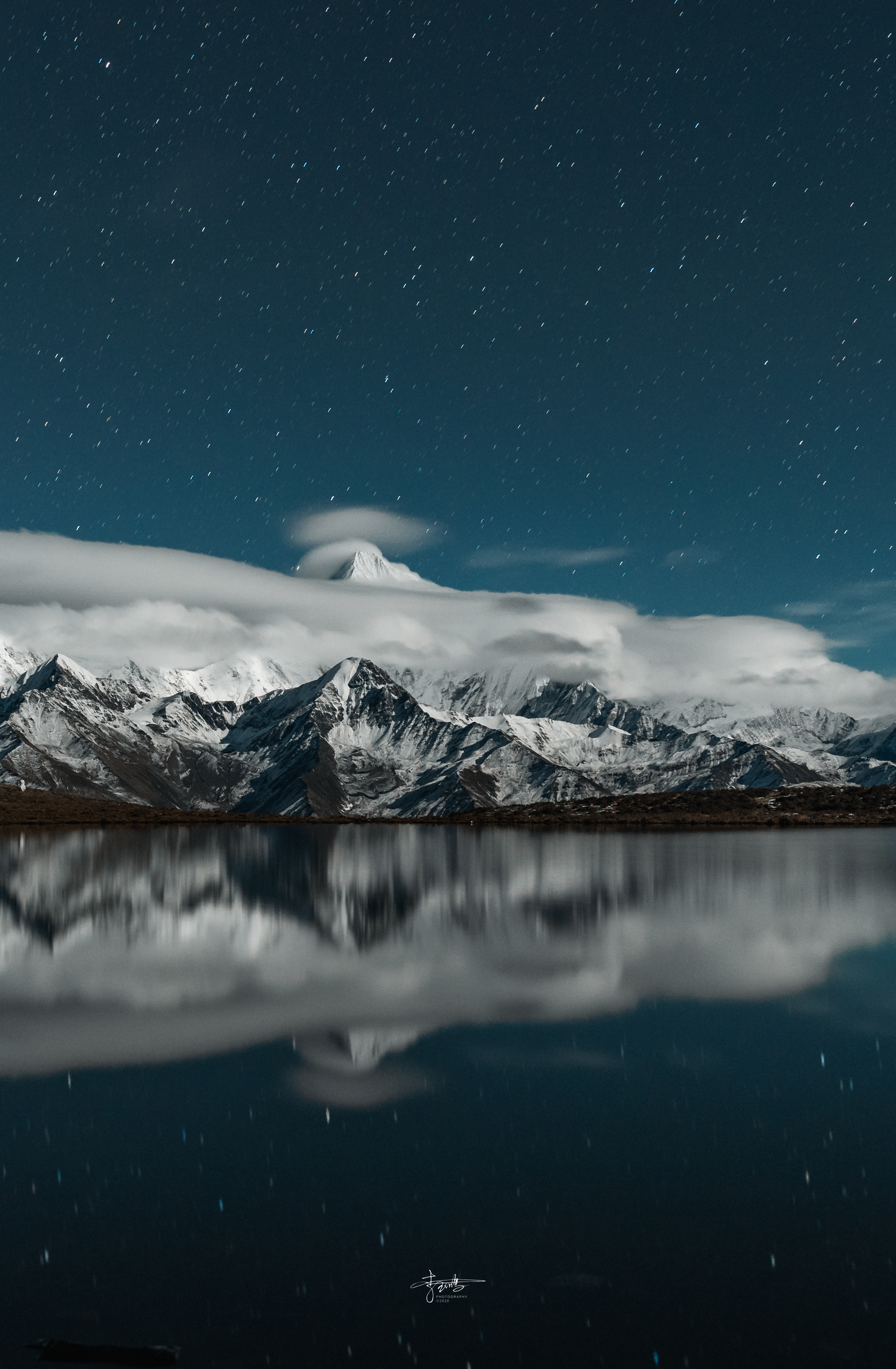 晚上贡嘎的星空拍摄到十点多,月亮落下去之后
