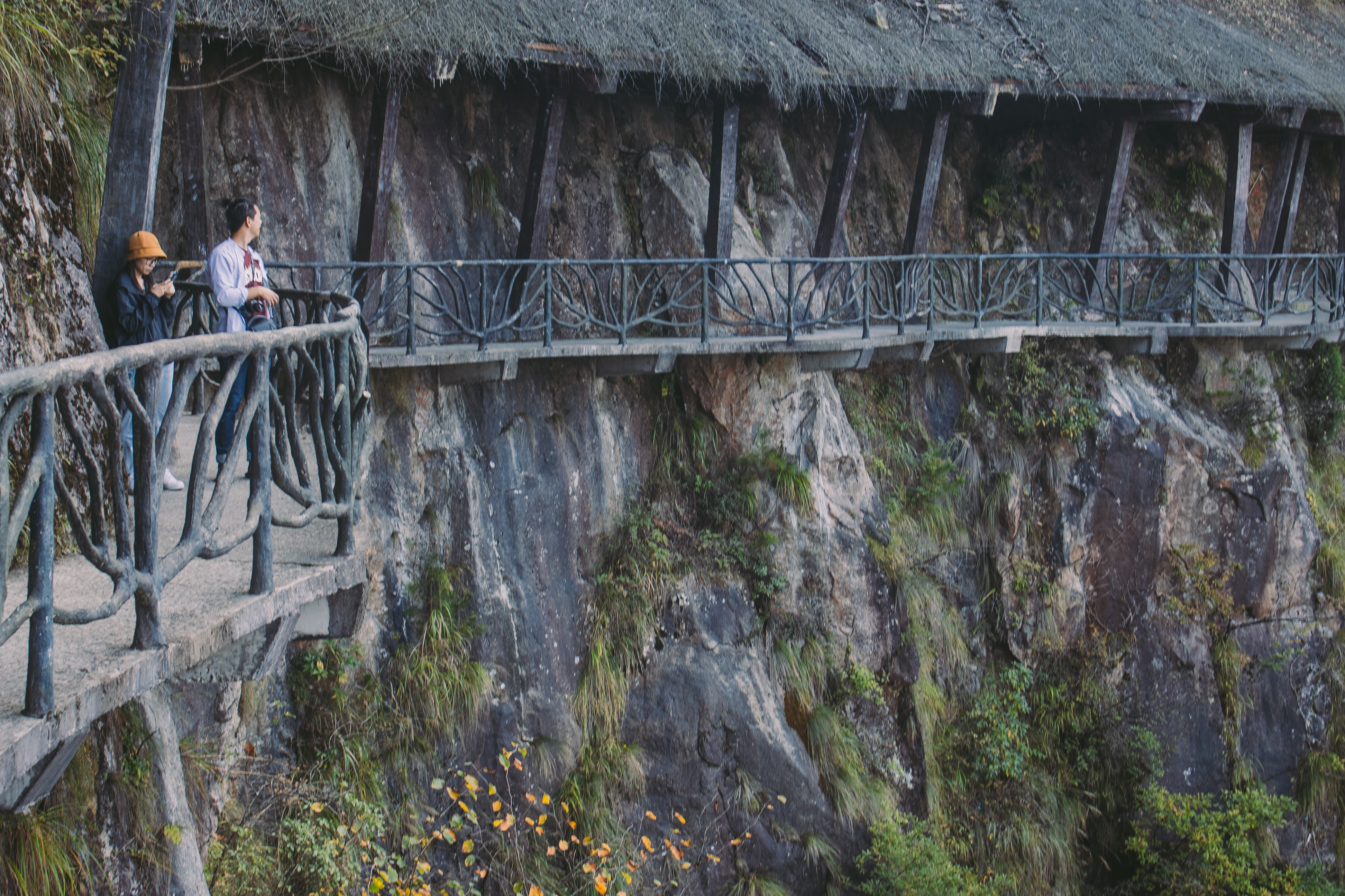 在来大明山之前并不知道它有“小黄山”的称号,走上悬空栈道,满眼都是棱角分明的山体,和依附着山体的苍劲有力的树。没忍住感叹 “这跟黄山也太像了吧” ,同行的小伙伴回头跟我说“你不知道它叫’浙江小黄山‘?”🌚