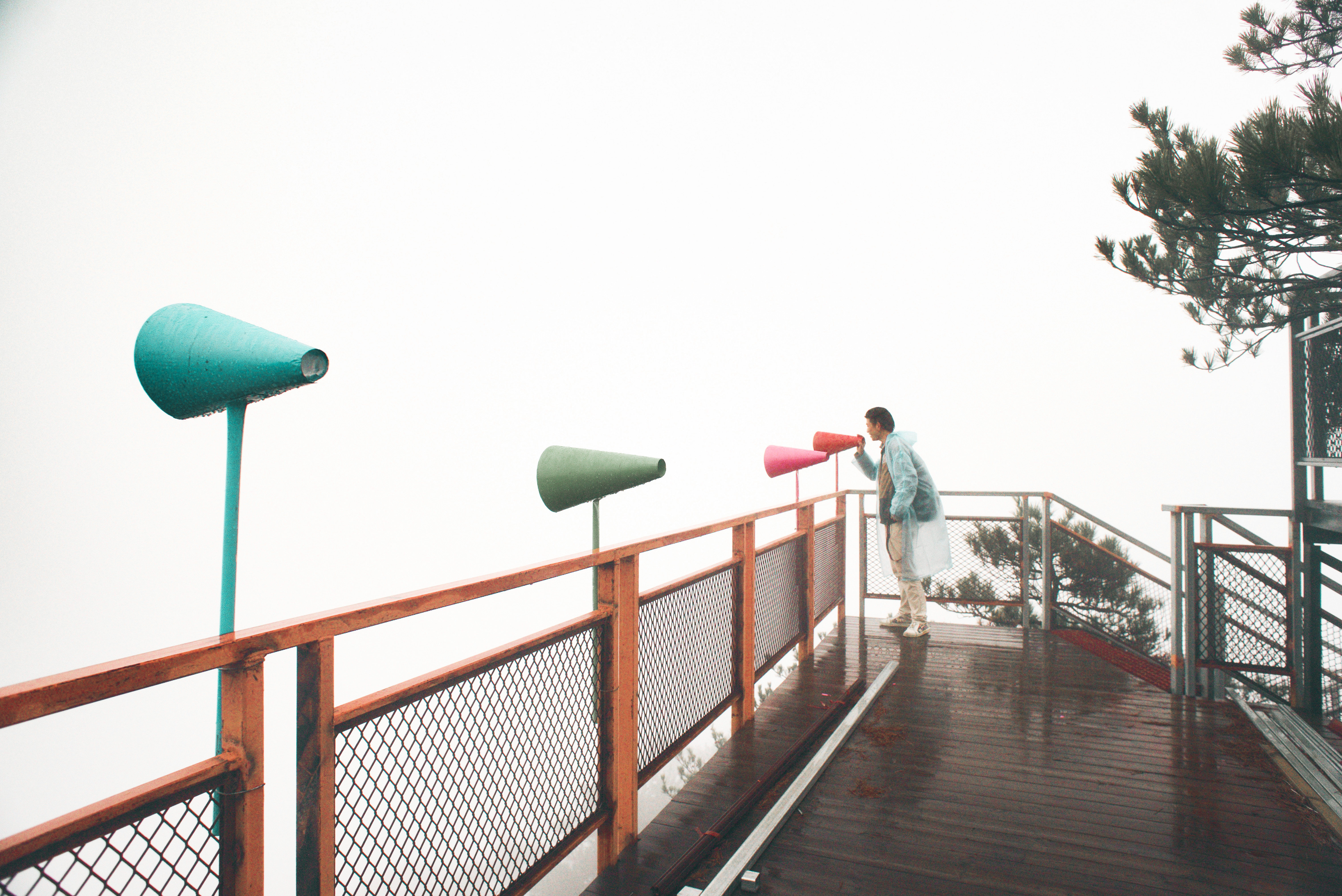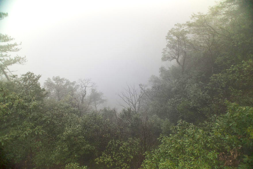 在山下的时候还不死心,跟自己说冲出云层就能看到云海了吧,猜猜我看到了什么?是一张张浓雾组成的白纸和画布。