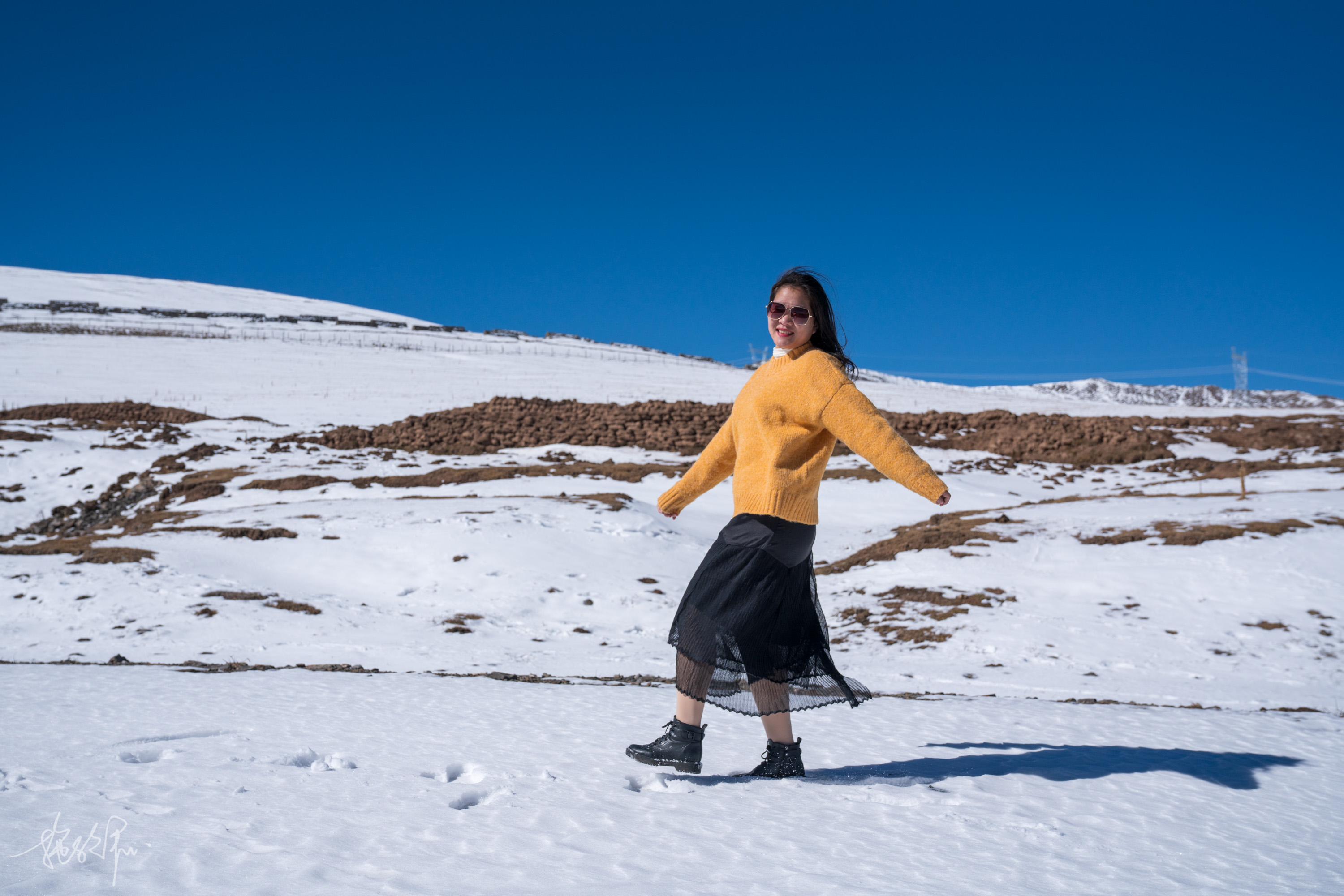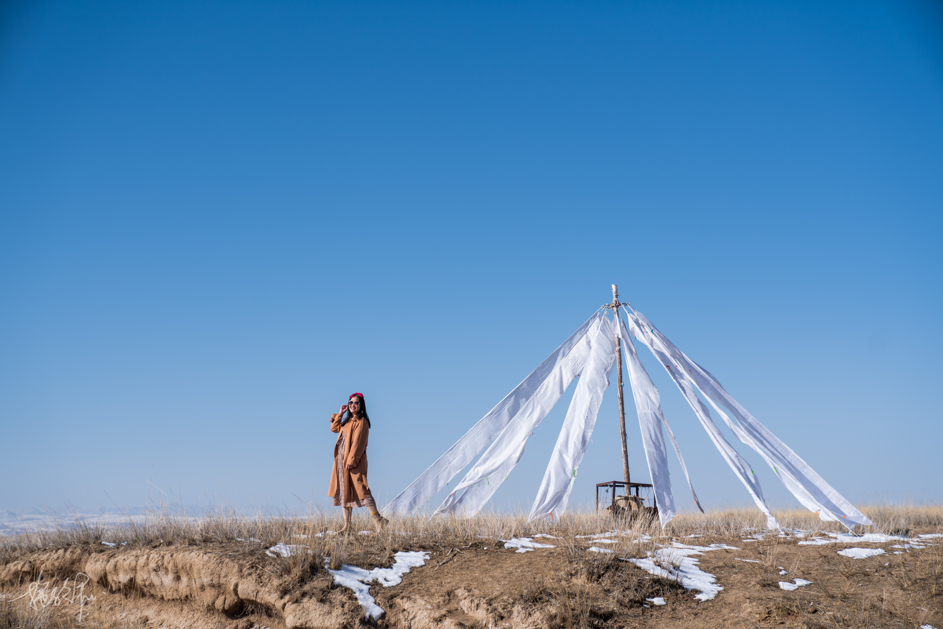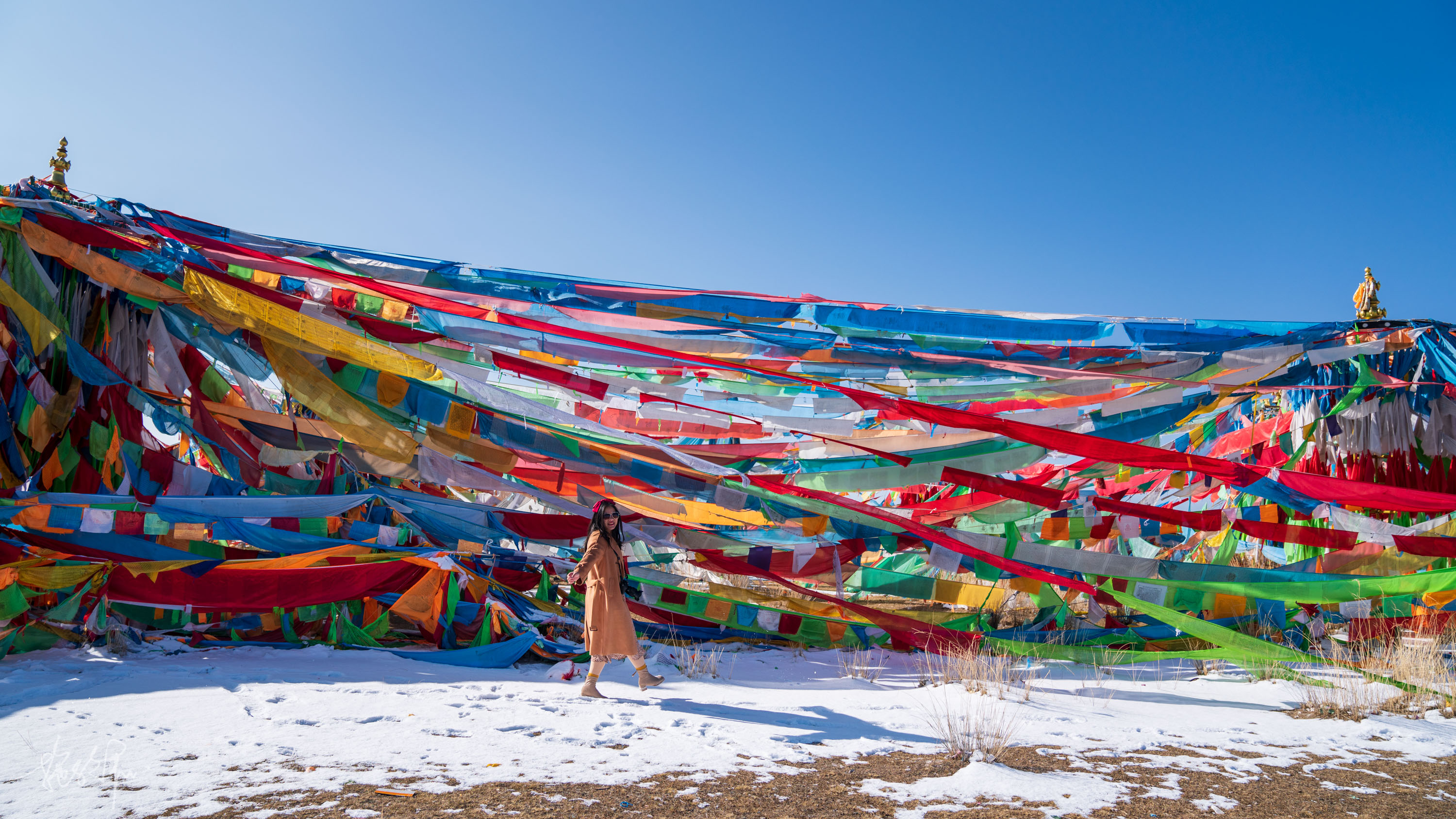 第二天一早,我们顺着昨天走过的路前往经幡处,网上说的有当地人会收10元的门票,估摸是冬天的缘故,我们俩简直是承包了一整个景区。当然这里应该也算不上景区,就是一个野景点,可真的太适合拍照啦!