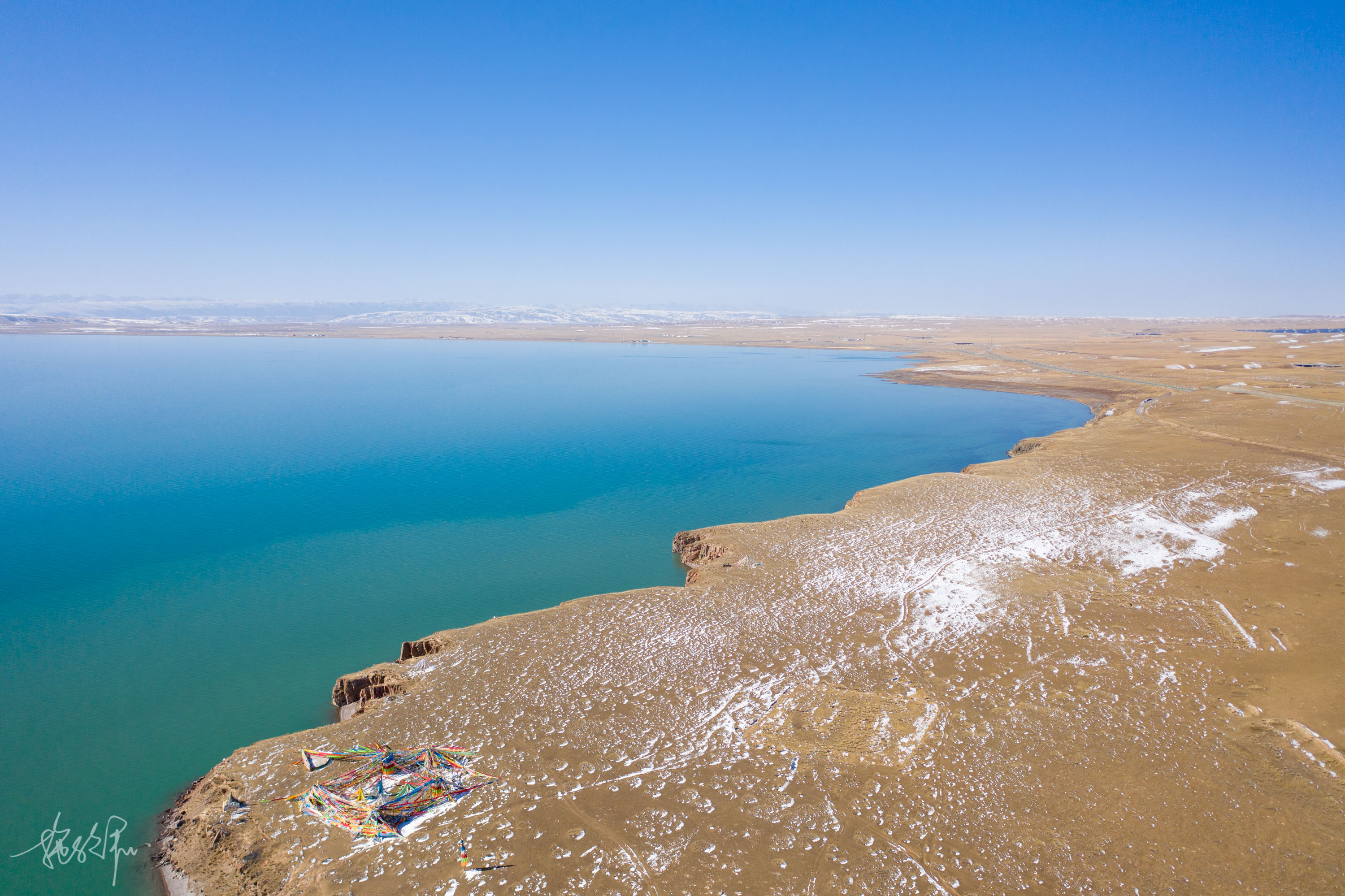 只是这一回,我遇到的青海湖,是雪白与蔚蓝的青海湖,是一个又一个的断崖,是湖面上展翅高飞的成群海鸥,是成片的经幡阵,还有年代久远的白色经幡。
