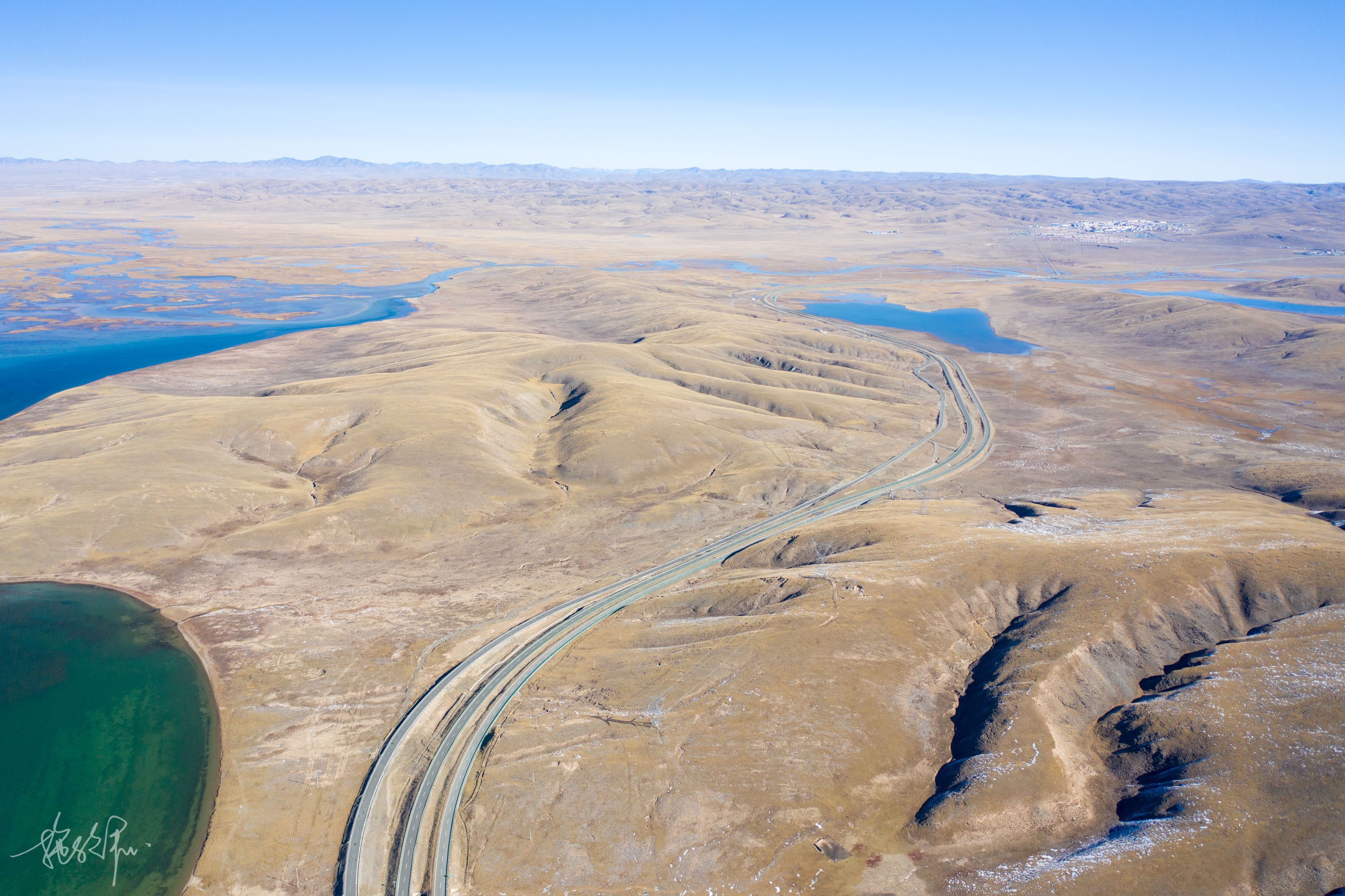 真的,就是你行驶在一条没什么车流的路上,路弯弯曲曲上下起伏,两边都是各式各样的湖泊,一会儿一个,一会儿又一个,真的太美了。我索性就将车停在了边上,无人机的视觉更震撼人心,放眼望去都是大大小小的湖泊,三条并排的公路就如同三条巨龙一般从中穿梭而过。