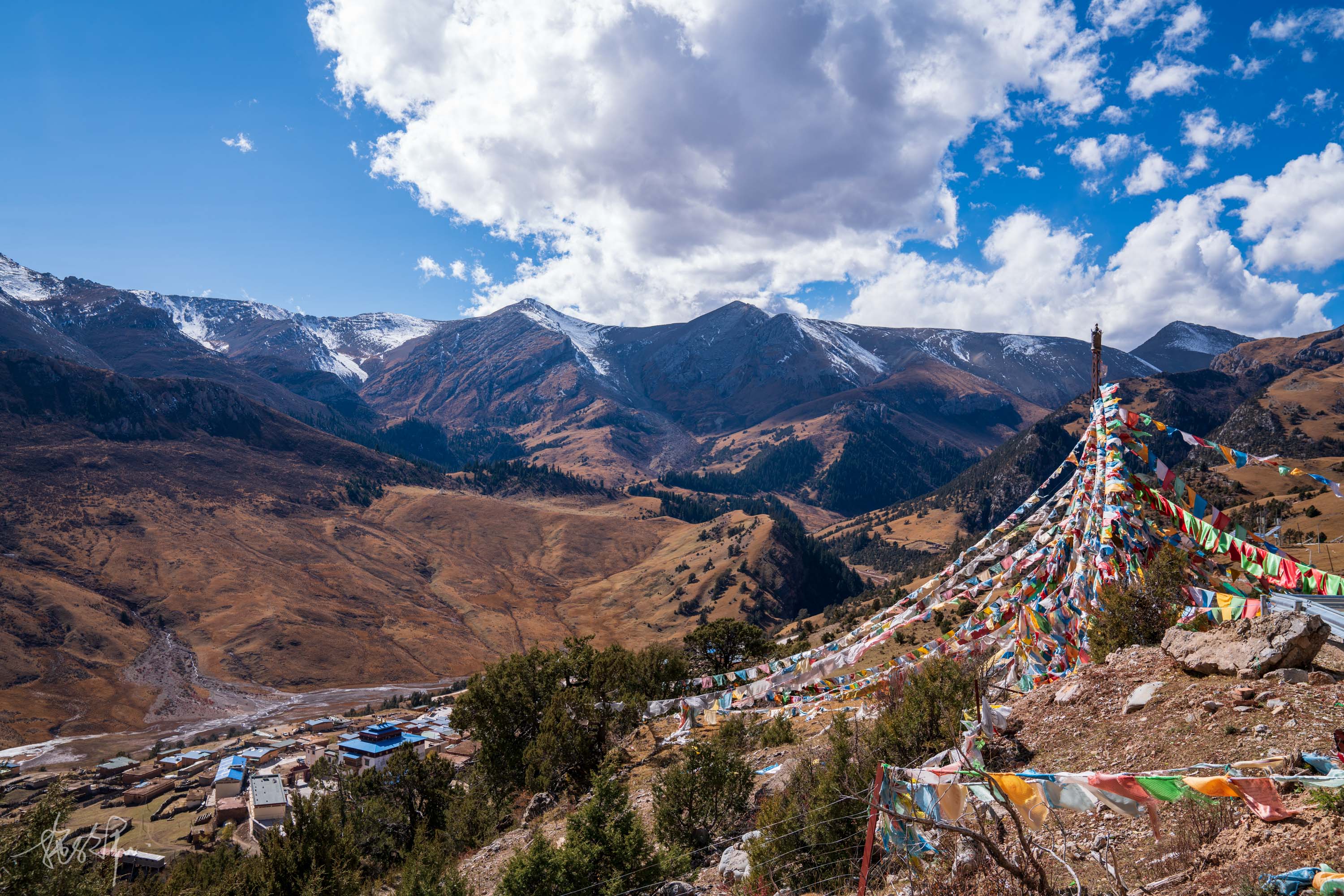 尕朵觉沃,先导航到扎朵镇,镇子上有吃住可以补给,我的机位是导航到乌琼隆,一直往里开就能看到尕朵觉沃转山节的一个小广场,眼前就是尕朵觉沃了。