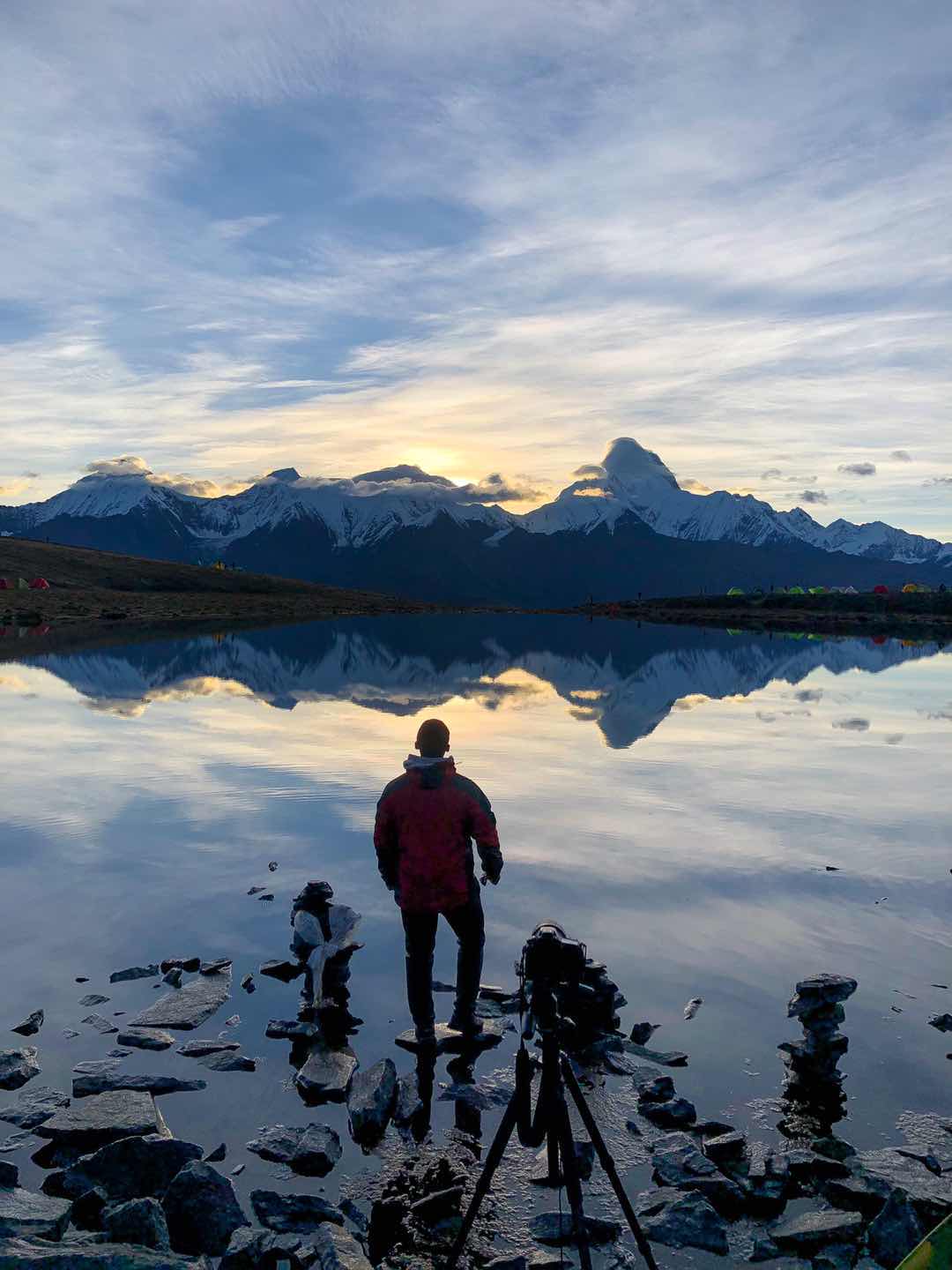▲在冷嘎措,错过日照金山,但没错过你▲