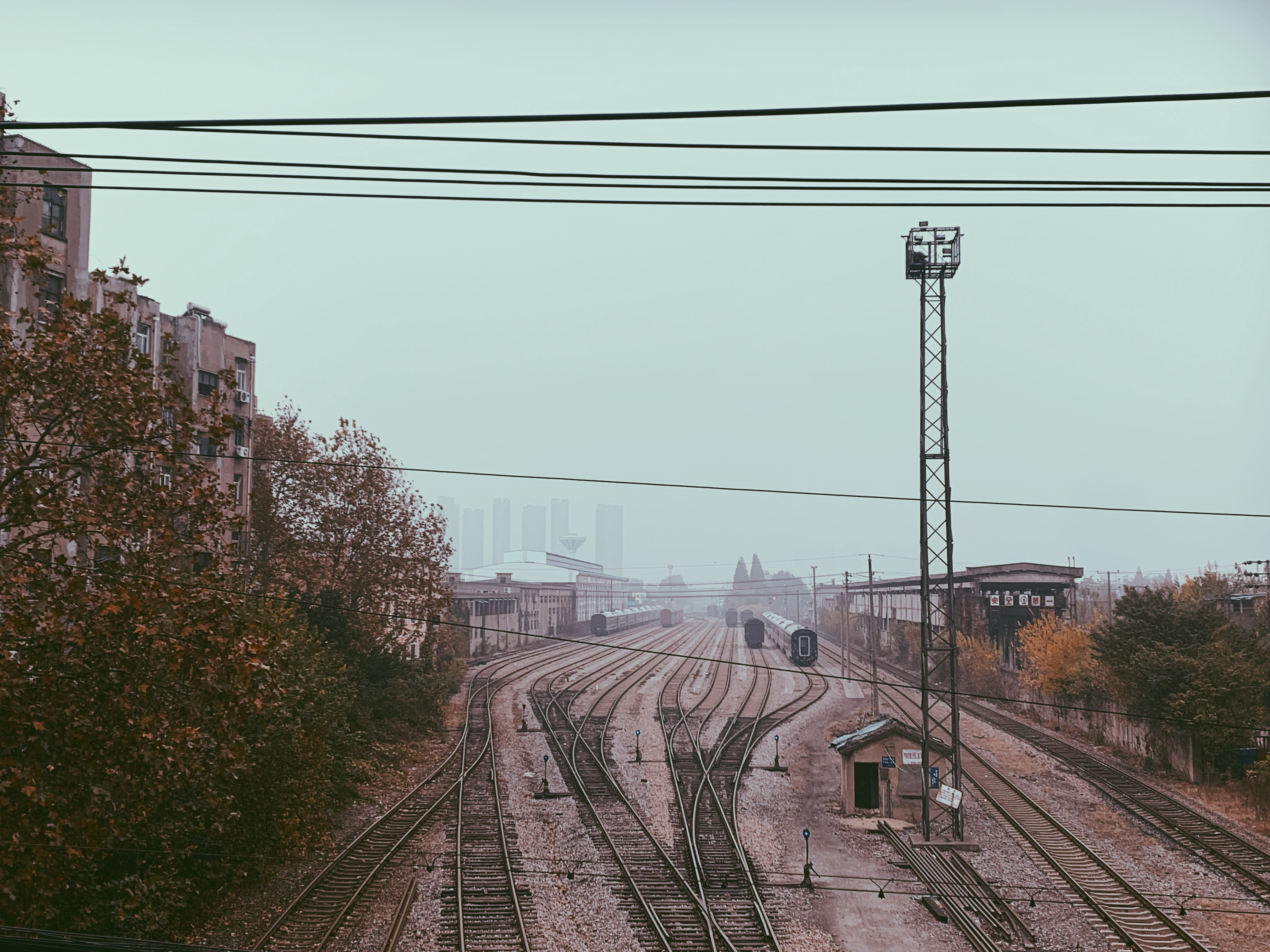 天桥上,仅存的几节列车停靠在轨道上,它们中的大多数已经完成了今生的工作,曾经的车如流水马如龙亦只能追忆,如今高铁也取代了绿皮火车。铁轨已被落叶稀稀拉拉的覆盖,踩在上面担心惊扰了这百岁年月,斑驳的门窗成了无声的见证者。天气骤变,阳光不见了踪影,阴沉沉的天空添了沧桑和落寞。晚风正急,似乎即将入冬,也许就是明天,到时又是另一番光景。
