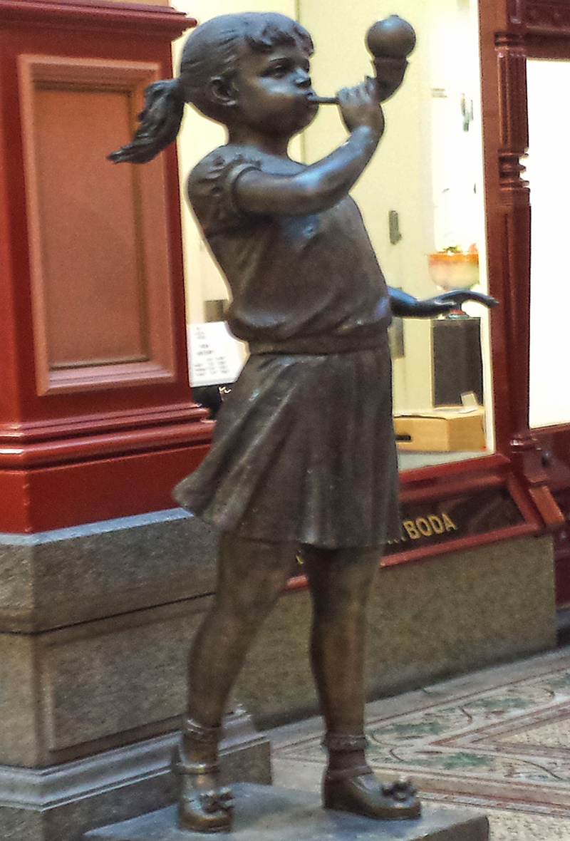 拱廊有几个小雕塑。这个是逼真的“吹海螺小姑娘”吧。